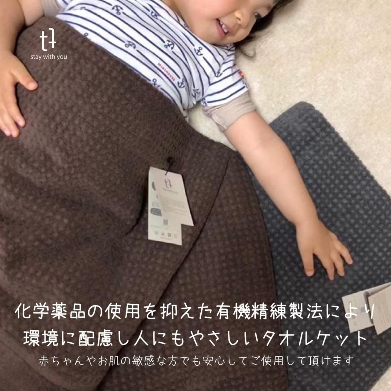 【こだわりのオーガニック製法】栽培からこだわられたオーガニックコットンを使用。更に化学薬品の使用を抑えた有機精練製法により環境に配慮し、地球にも人にもやさしいタオルケットです。