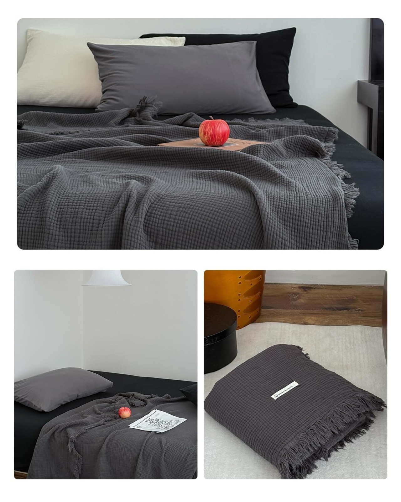 VCGUDOE ガーゼケット タオルケット シングル 夏用 棉100% 4重ガーゼ ナチュラルコットン ガーゼブランケット 肌掛け 吸湿速乾 通気 軽量 柔らかい 肌触り良い 丸洗い 冷房対策 (ダークグレー, 150*200cm)