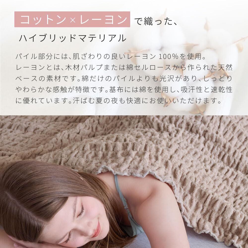 抜群の通気性の良さで、サラッと快適。パイル地は通気性が良いため寝汗をかいても蒸れにくく、寝起きでもサラッとした心地よい肌触り。空気の通り道が多く、汗っかきな方やデリケートな肌の方にぜひ使っていただきたい寝具です。