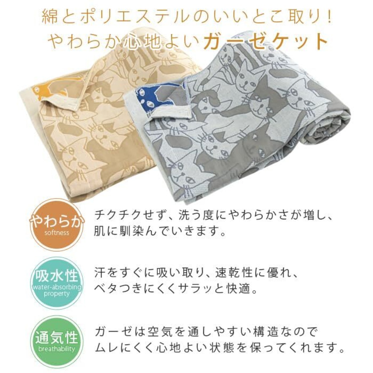 さらっと優しい肌触りの3重ガーゼケット。