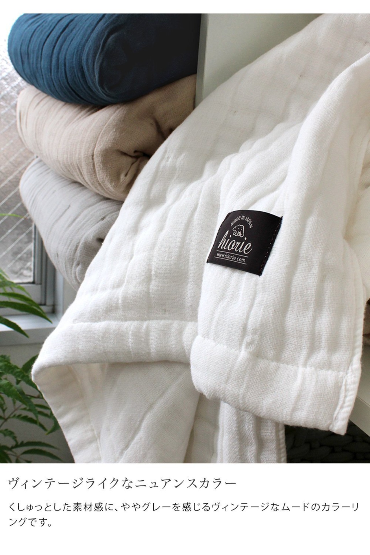 【ヴィンテージライクなニュアンスカラー】くしゅっとした素材感に、ややグレーを感じるヴィンテージなムードのカラーリングです。 ※生地について ガーゼ表面に等間隔に出ている点は、多重ガーゼを接結させながら織る工程でできる織り目です。ガーゼは性質上デリケートな織物のため、引っぱり等、お取り扱いにはご注意ください。