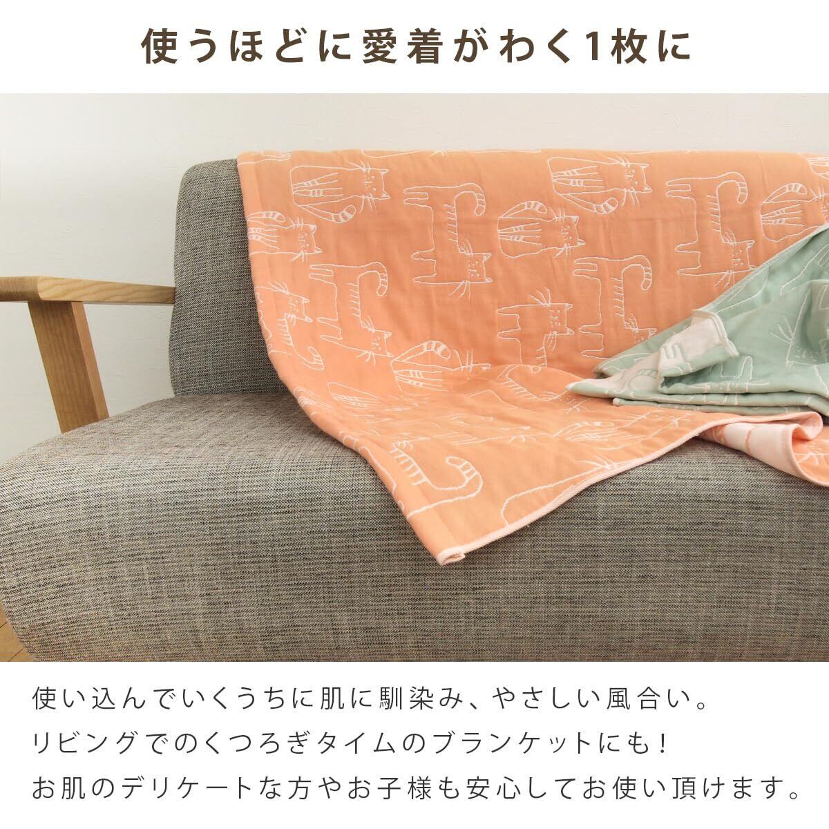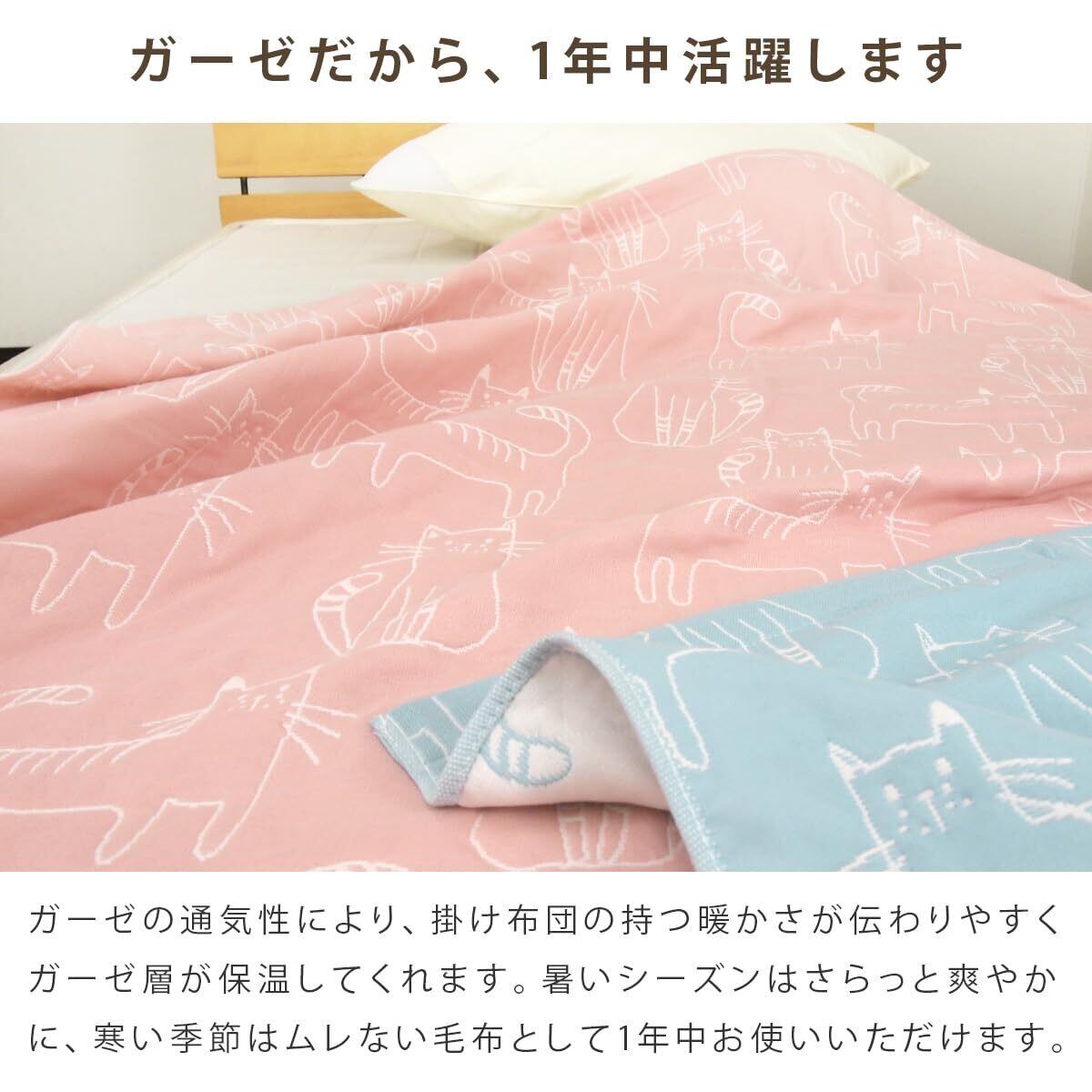 【人気商品】リヴェール ガーゼケット シングル 3重ガーゼ ねこ柄 綿混 ブランケット 夏掛け 肌掛け (ブルー)