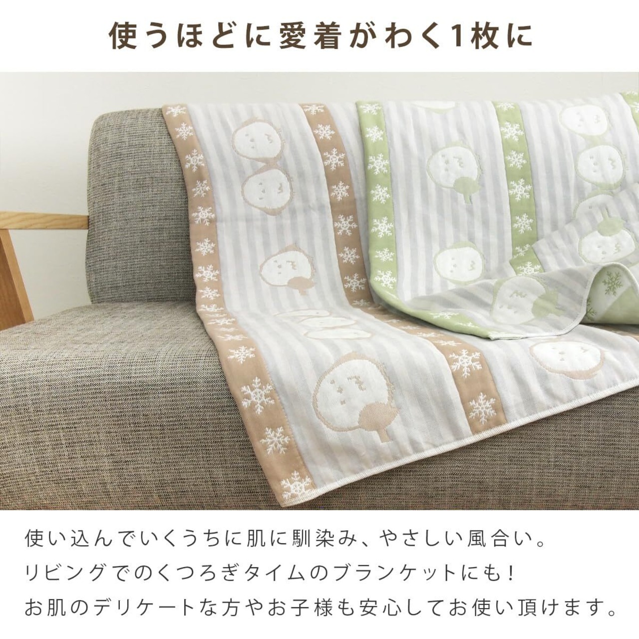 【限定セール】リヴェール ガーゼケット シングル 3重ガーゼ シマエナガ柄 綿混 ブランケット 夏掛け 肌掛け (ブラウン)