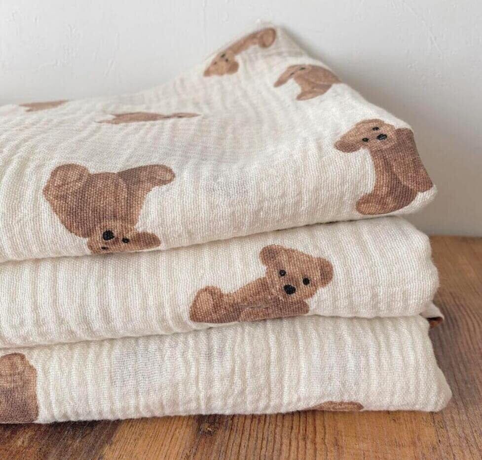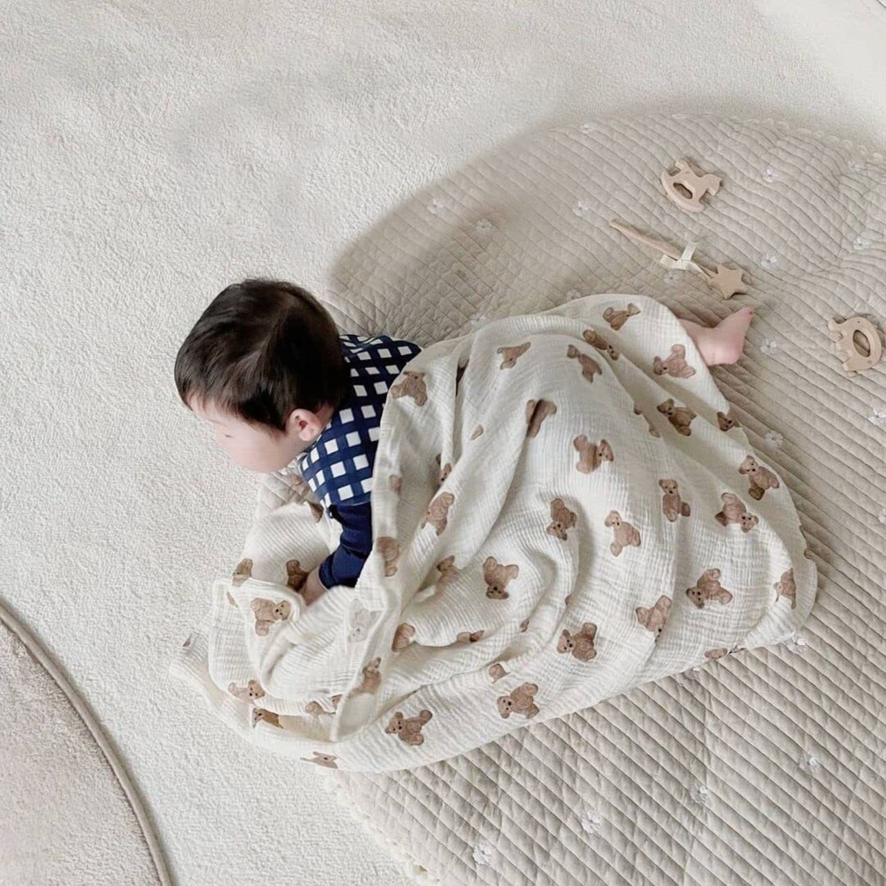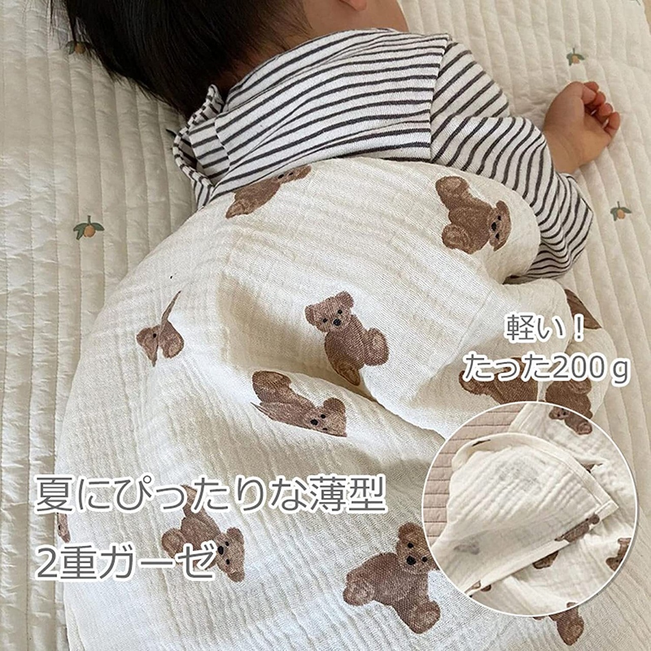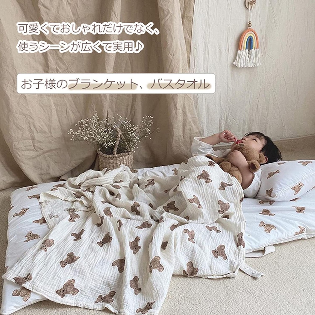 Seiwaraku タオルケット ガーゼケット くまさん 子供 子どもケット お昼寝 おなかケット 沐浴ガーゼ 2重 綿100% ガーゼ 100*120