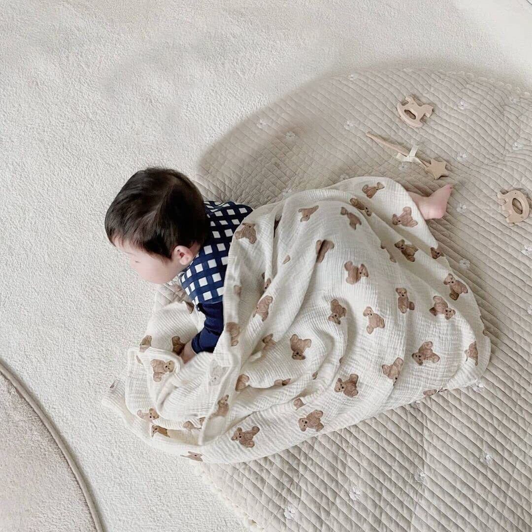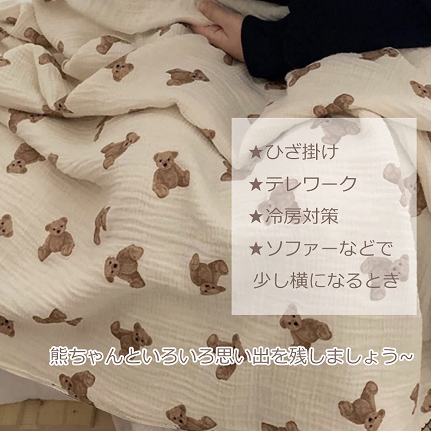 【人気商品】Seiwaraku タオルケット ガーゼケット くまさん 子供 子どもケット お昼寝 おなかケット 沐浴ガーゼ 2重 綿100% ガーゼ 100*120