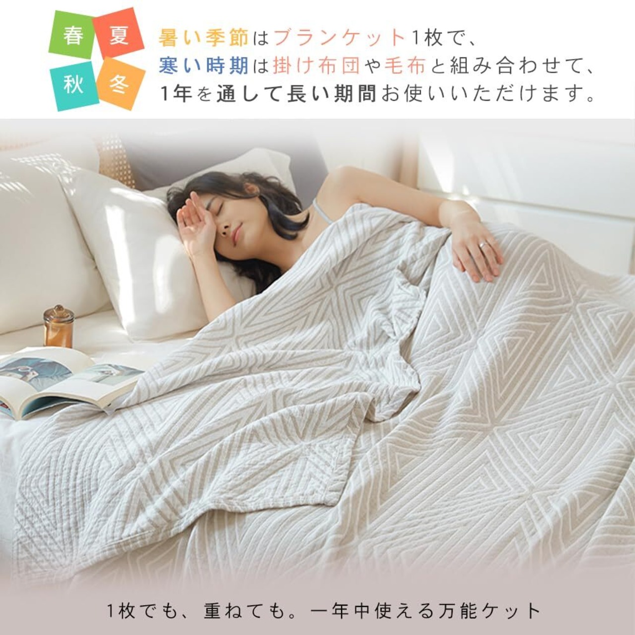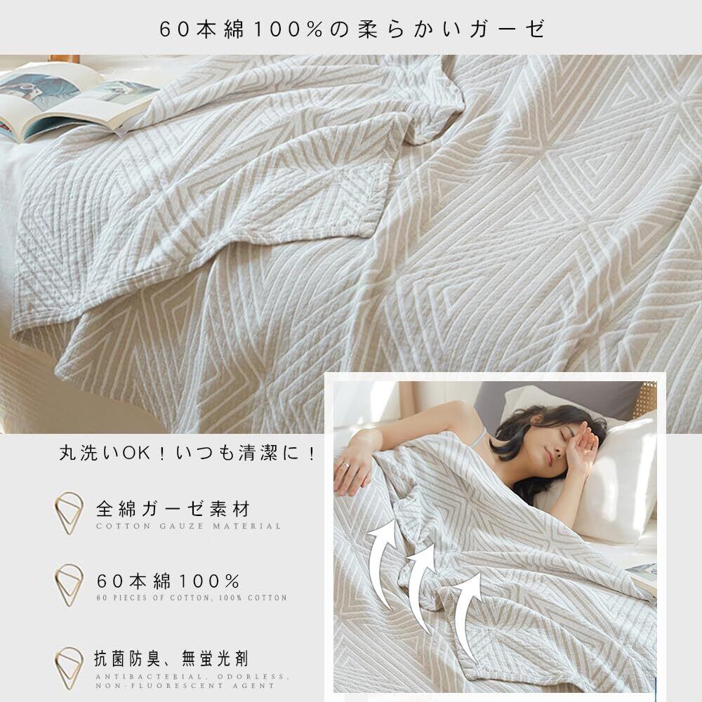ガーゼケット 綿100% 4重ガーゼ キルトケット 夏用 ひんやり 肌布団 タオルケット 薄め シングル ダブル 肌掛け 夏毛布 ブランケット 柔らか 通気性 吸湿 おしゃれ お昼寝ケット 寝汗吸収 (グレー, 150cmx200cm)