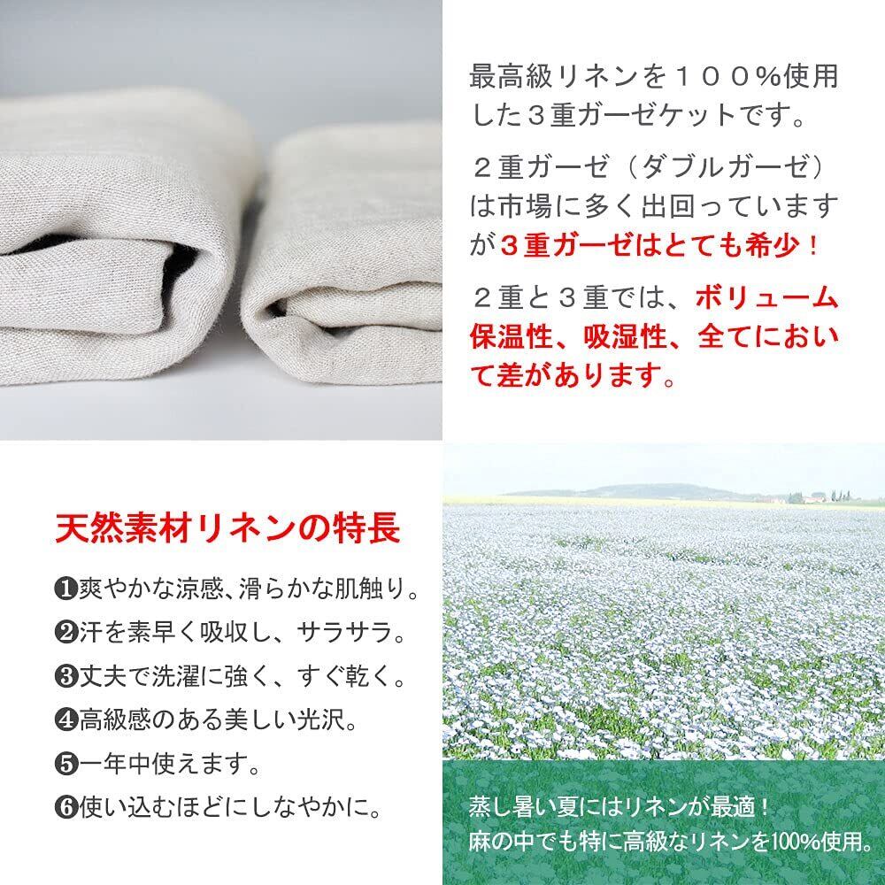 リネン 3重 夏用 ガーゼケット 日本製 天然屋正規品 スーピマコットンタオルハンカチ付 ふんわり 軽い 涼しい 麻 タオルケット 寝具 プレゼント (ハーフ)
