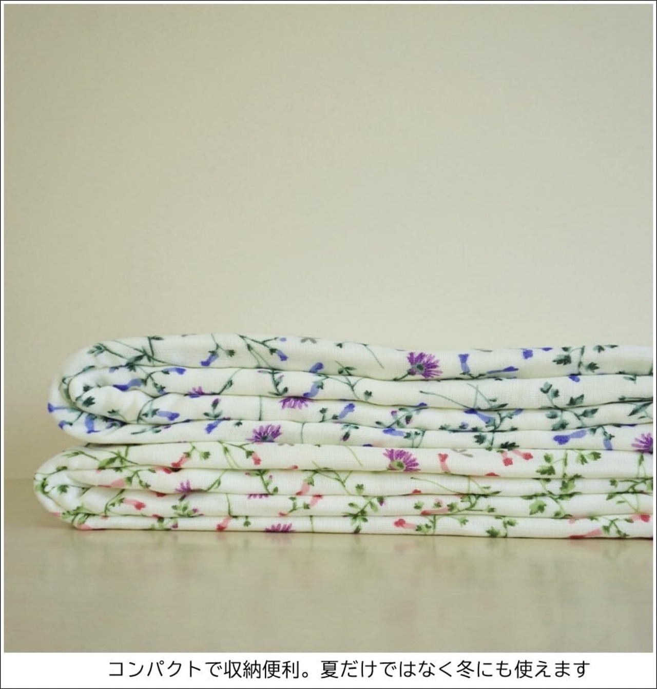 【夏も冬も】夏にはさわやかに、そして冬にはガーゼの間にあたたかい空気を含みからだにフィットするので、羽毛布団の中掛けとして使えば毛布いらず。とても便利で重宝します。