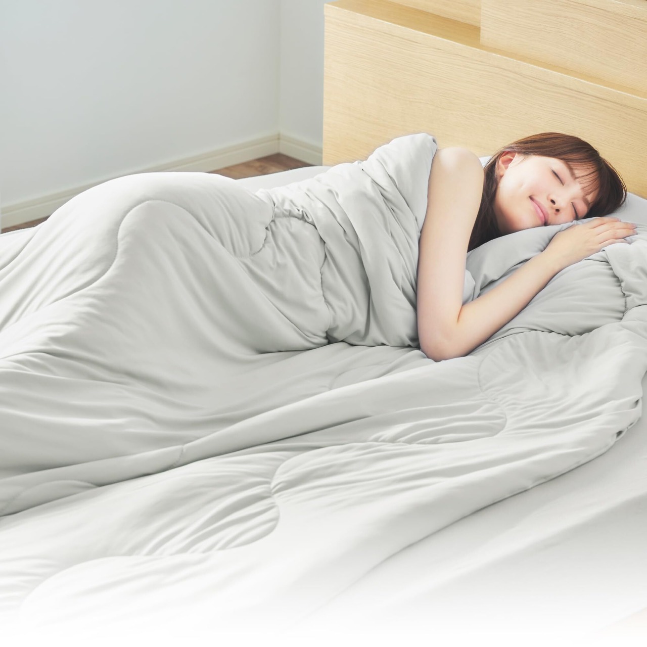 [安心素材&オールシーズン対応]赤ちゃんが口に入れても安全な当製品は、世界基準のエコテックススタンダードを取得。肌に優しく、家族揃って安心してお使いいただけます。特殊構造の中綿は空気をたっぷりと含み、乾燥肌にも低刺激ななめらかさ。断熱性を高め、ダニの生息や埃の付着を防ぎ、アレルギー肌などに悩む方にも。中綿は軽量&細かな繊維で、冬でも温熱を逃さずキープ!また高い通気性と透気性で適度な気温に調節し、春先や夏でも心地よい寝心地を叶えます。