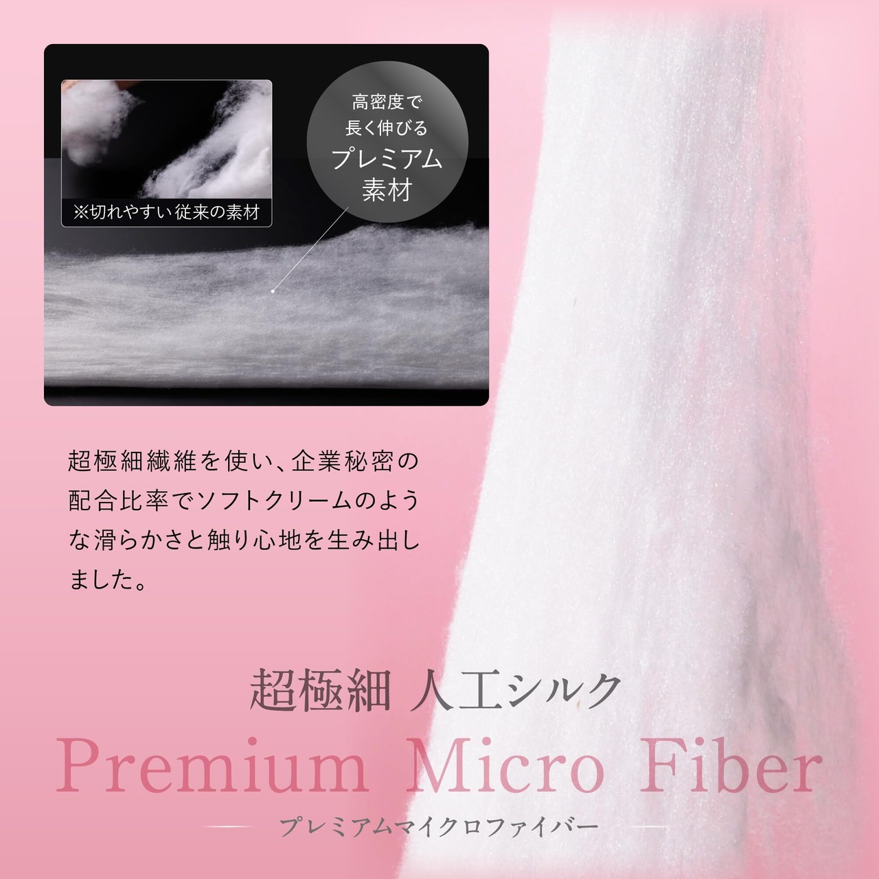[2種のプレミアム素材]ふわっと軽くて、もちっととろけるような新感覚素材は、ふんわりとした柔らかさと全身を包み込むような感触を実現。企業秘密の配合比率で、内部の繊維を究極に柔らかく仕上げており、伸縮性のある生地と相まって、全身が包まれるようなドレープ感を味わえます。さらに外側生地には従来のポリエステル糸より細いプレミアムなマイクロファイバー繊維を採用。生地が完成したあと、起毛加工を加えることで、表面を柔らかくし、通気性を一層高めます。