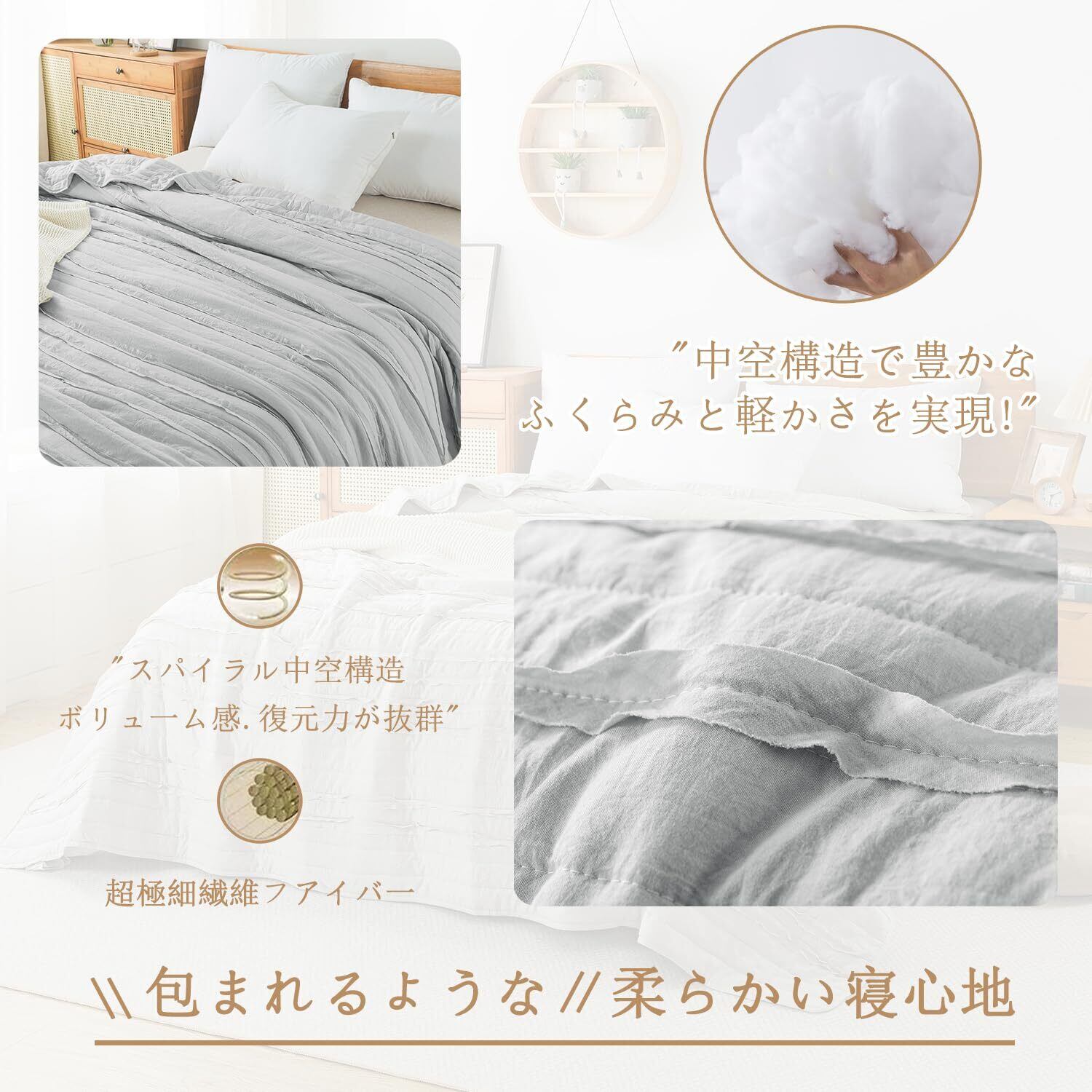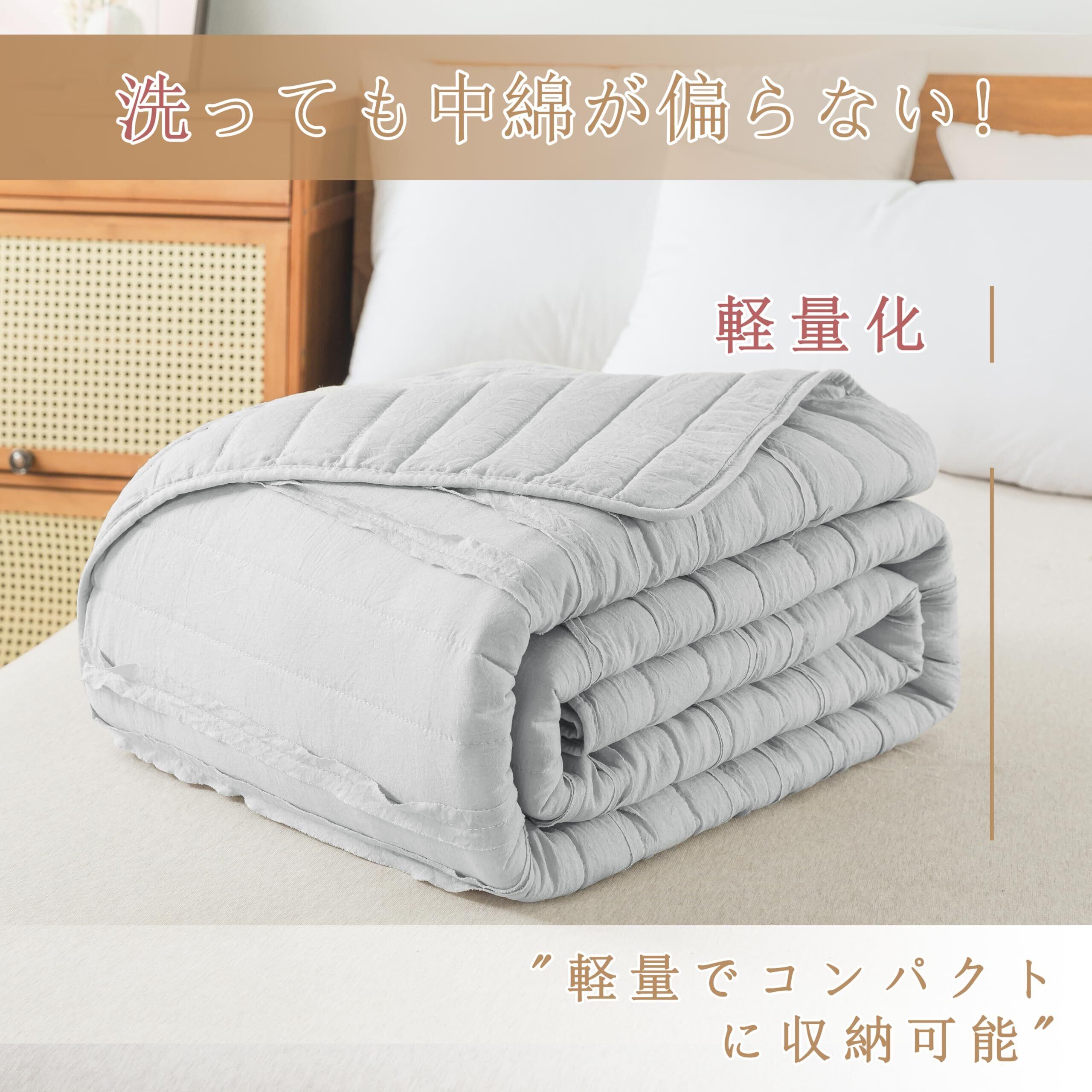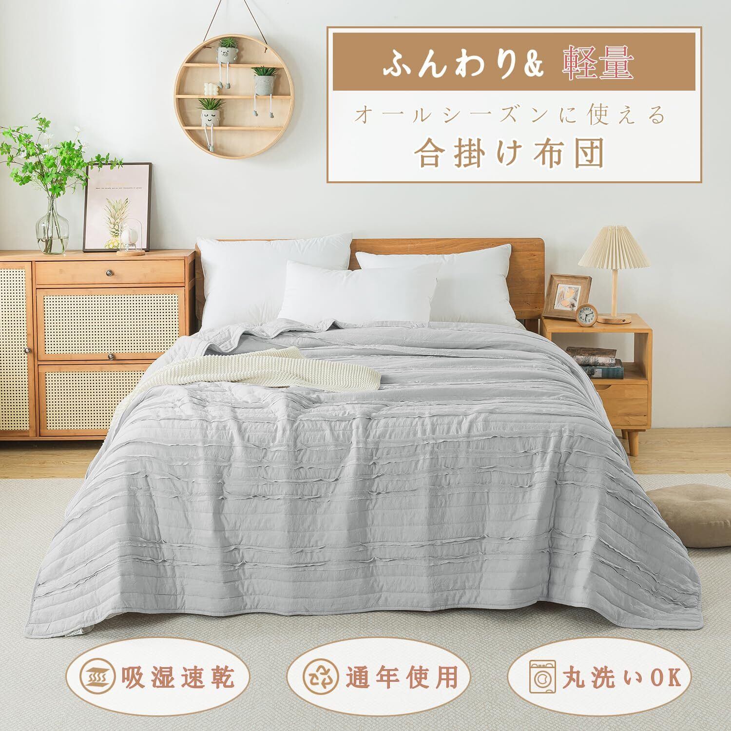 キルトケット セミダブル 合掛け 春秋向き 布団 洗える かけ布団 柔らか 暖い 軽量 収納便利 オールシーズン 合い掛け布団 【超極細中綿使用】吸湿 通気 速乾 (グレー, シングル・140X200cm)