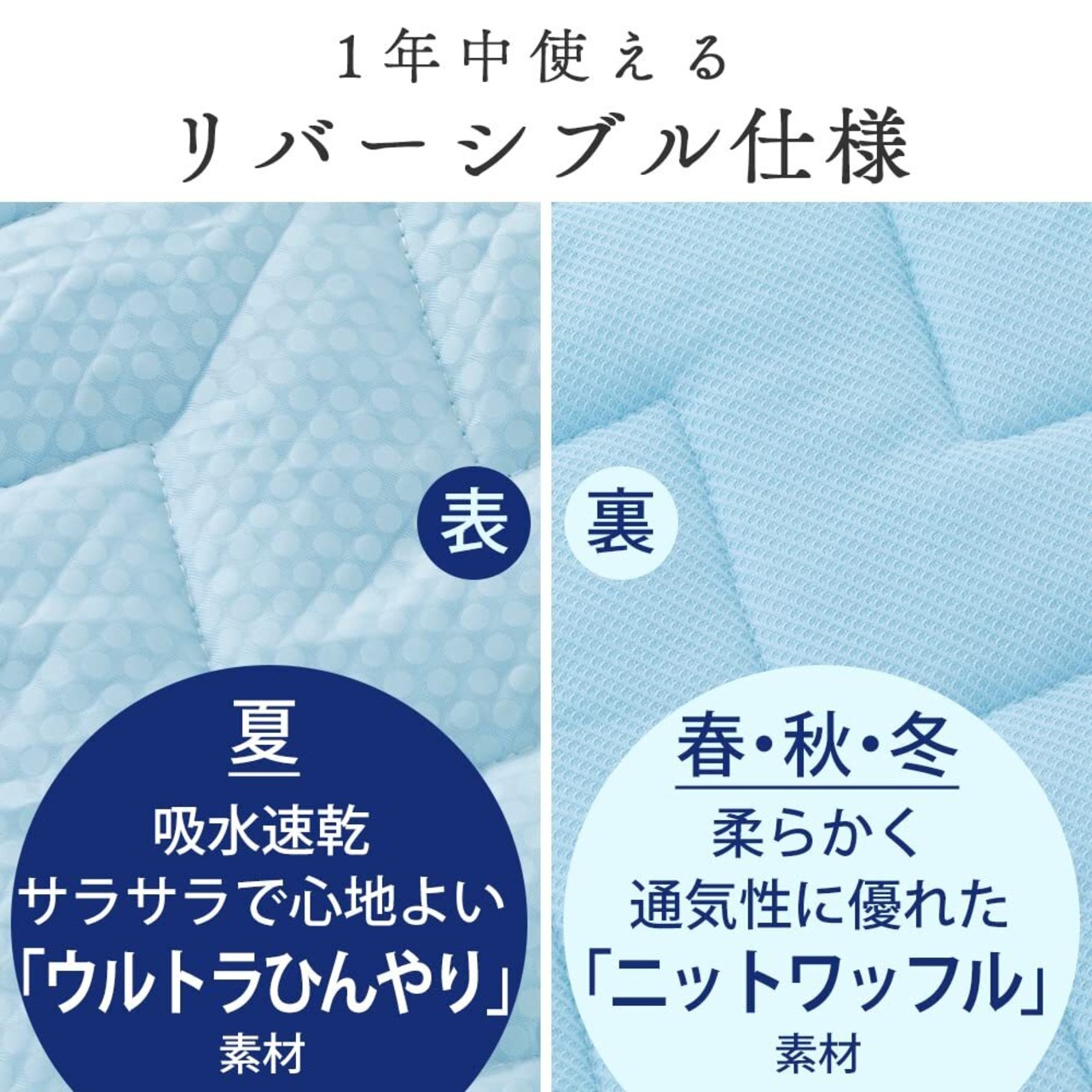 ・表面生地には肌触りと通気性が抜群の[ニットワッフル生地を使用しています。吸湿速乾繊維[LUCOOL]を使用しているので肌にサラリと心地よく、ベタつきにくいのがポイントです。お好みの生地面を選んでご使用頂けるオールシーズン対応可能にしたリバーシブル仕様のキルトケット!