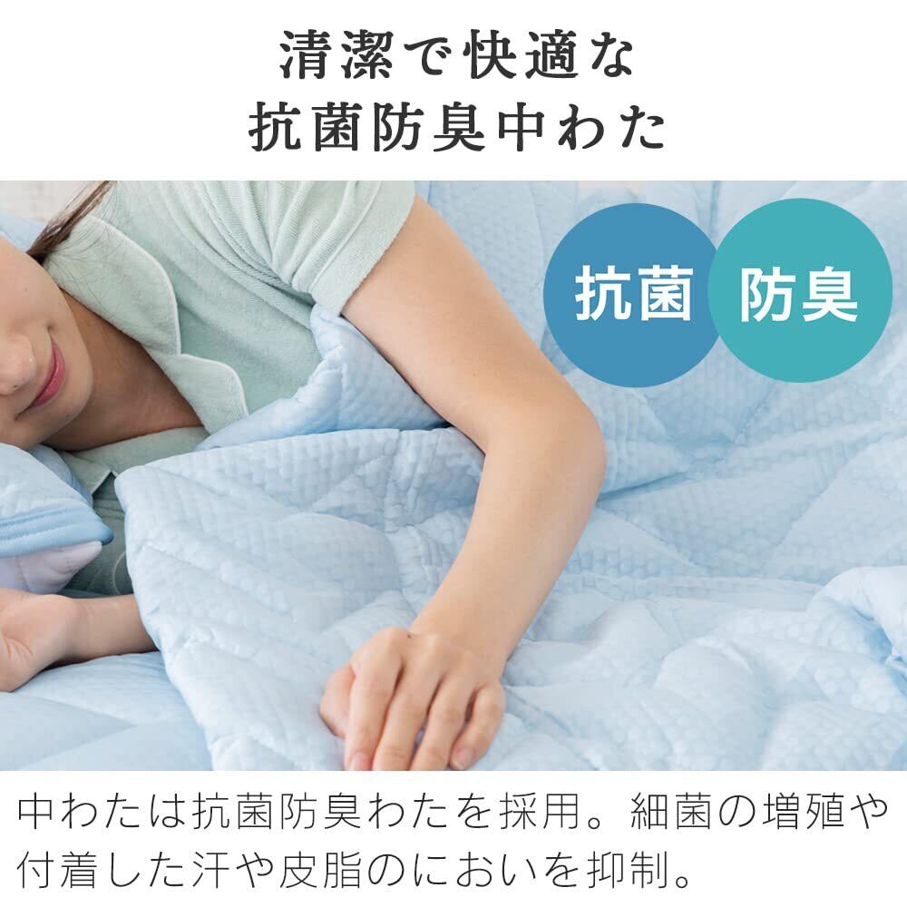 アイリスプラザ キルトケット 接触冷感スーパークールキルトケット Q-MAX0.614 しなやか素材×吸湿速乾 軽量&長持ち リバーシブル 抗菌防臭 丸洗いOK ウルトラひんやり シングル アイスブルー RMQK-14190-S