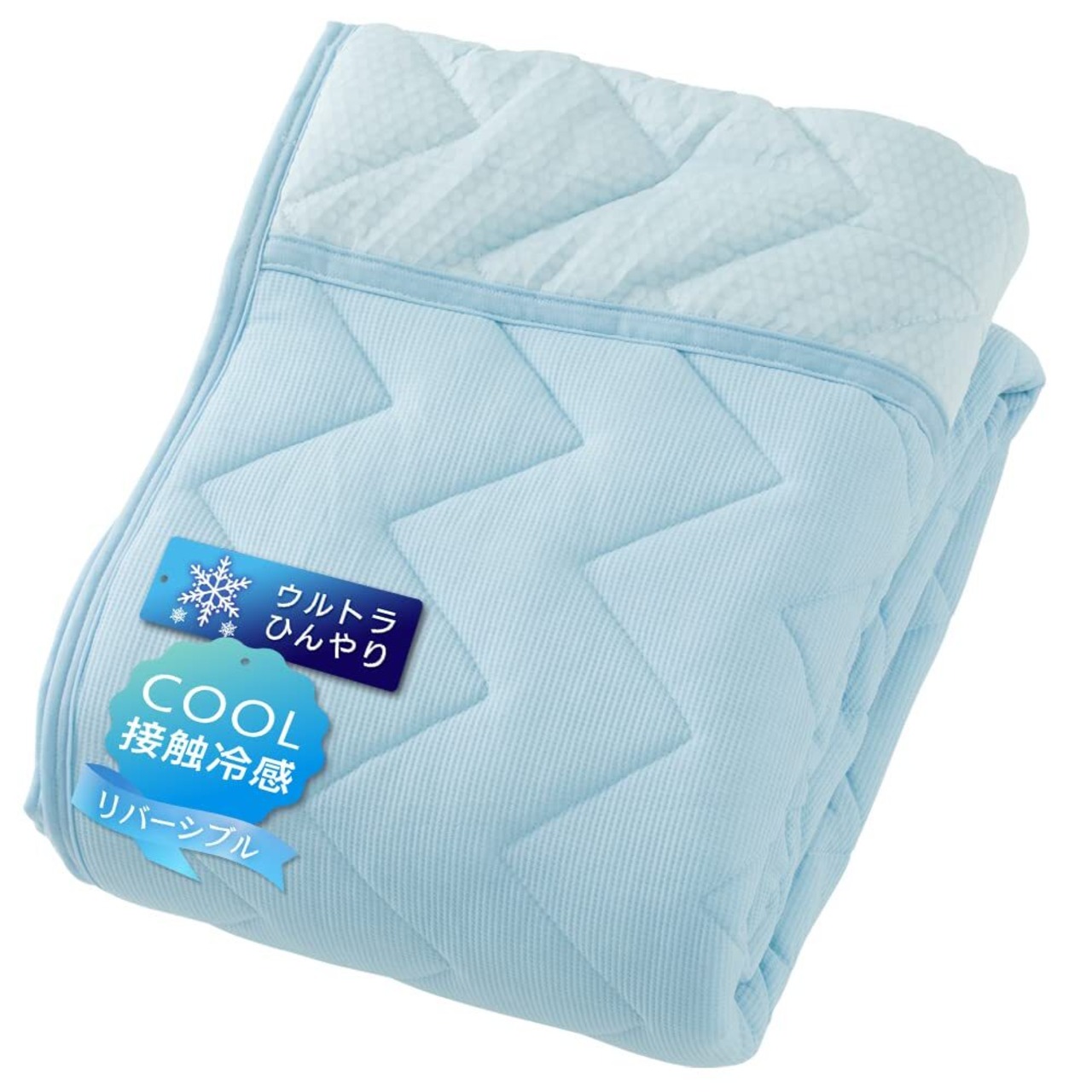 【人気商品】アイリスプラザ キルトケット 接触冷感スーパークールキルトケット Q-MAX0.614 しなやか素材×吸湿速乾 軽量&長持ち リバーシブル 抗菌防臭 丸洗いOK ウルトラひんやり シングル アイスブルー RMQK-14190-S