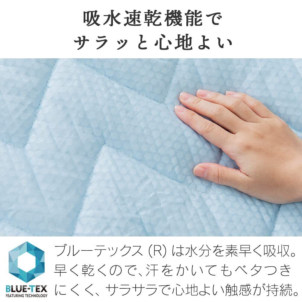 ・生地に直接高分子ポリウレタンを圧着することでジェルや水分で作られた従来の冷感寝具製品に比べ軽量で長持ち。従来品のデメリットであった重さと耐久性を解消してくれます。