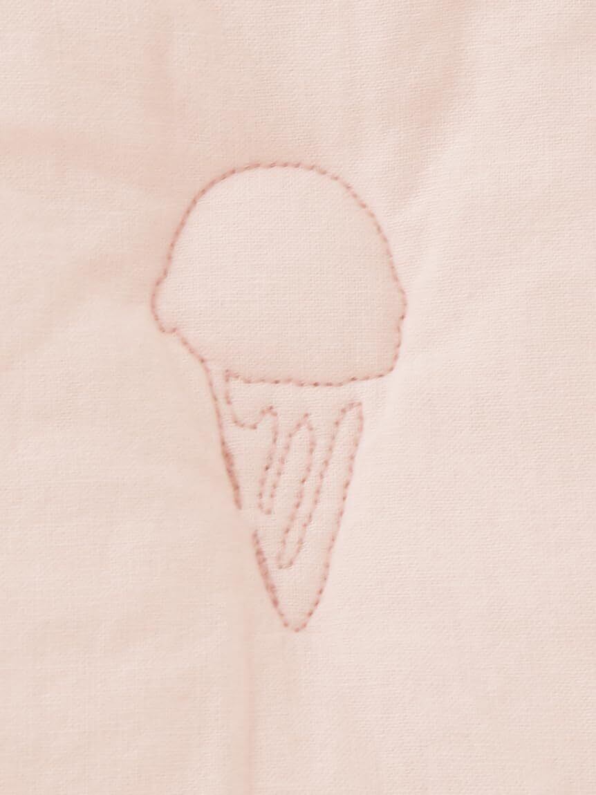 ミニミニサイズのアイス柄を散りばめたキルトケットです。コットン100%の生地に製品洗いをかけることで、コットン本来の自然な質感を出しました。ナチュラルな素材感がお好みの方や、夏のクーラー対策にもおすすめのアイテム。お部屋やインテリアにも馴染みやすい、やさしいピンクカラーもポイントです。