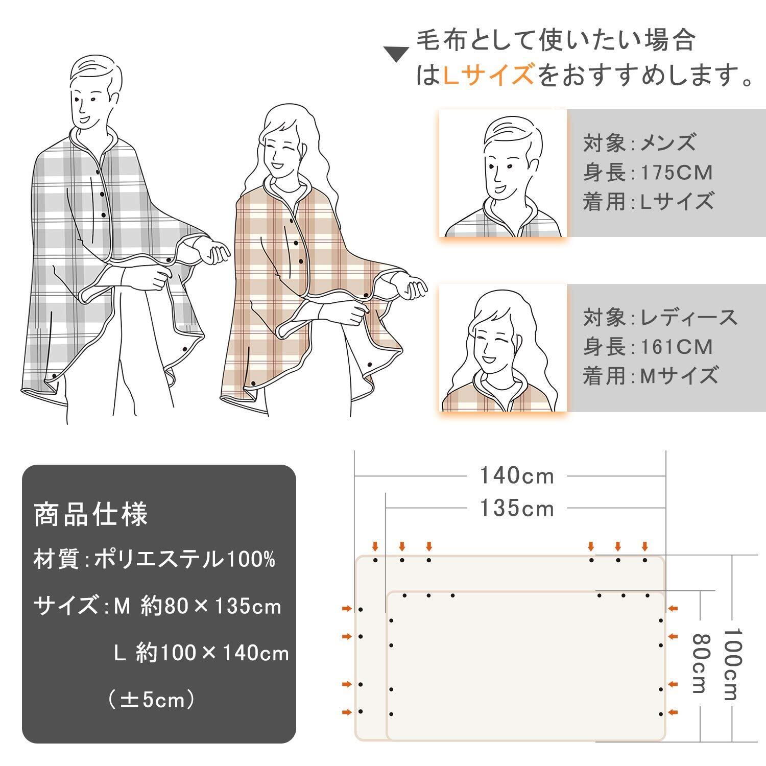 HAPGO ひざ掛け ブランケット 大判 選べる5色2サイズ 4way 着る毛布 ボタン付き 改良 防寒対策 あったか チェック柄 おしゃれ 吸湿保温 抗菌加工 静電気防止 洗濯可能 手触り 家·オフィス·アウトドア·車·出張 などに適用 通年使用