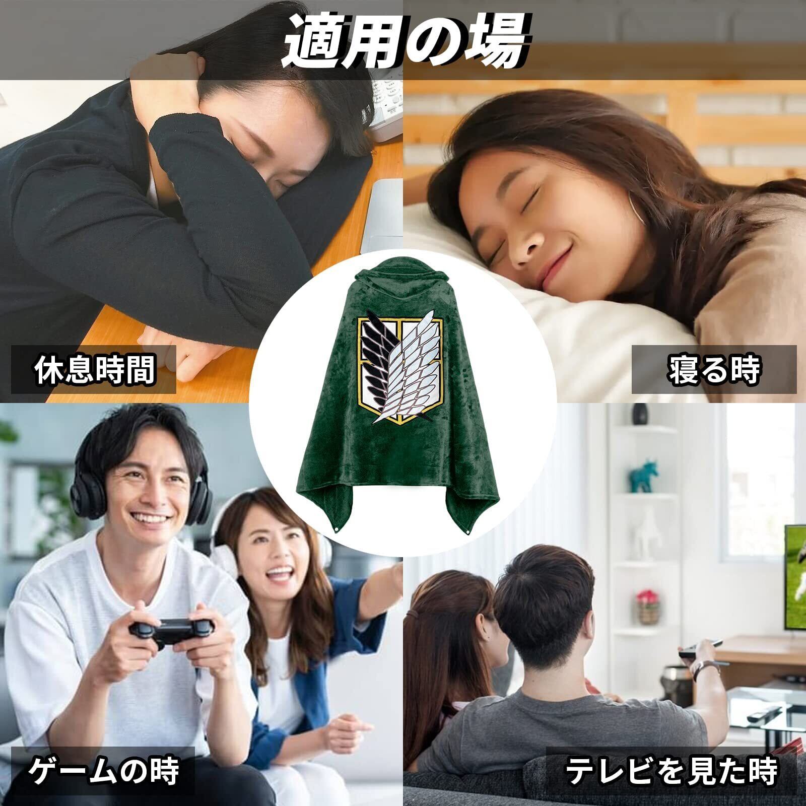 【2025最新】DIROLVON 進撃の巨人 着る毛布 ブランケット フード付き 刺繡スタイル 肩掛け 着脱が簡単 冬に ルームウェア 暖かい ふわふわ 可愛い おしゃれ クリスマス ハロウィン 仮装 記念撮影 グッズ (M)