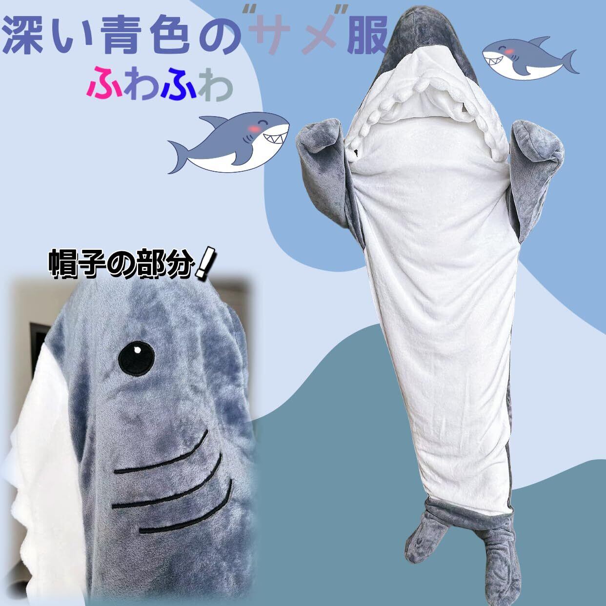 【2025最新】[Ligwon] サメ パジャマ 寝袋 着る毛布 ぬいぐるみ アニマルブランケット コスプレ 仮装 コスチューム 大人/子供用 秋 冬 暖かい 柔らかい ふわふわ 防寒 お昼寝毛布 冷房対策 部屋着 クリスマス お誕生日 プレゼント