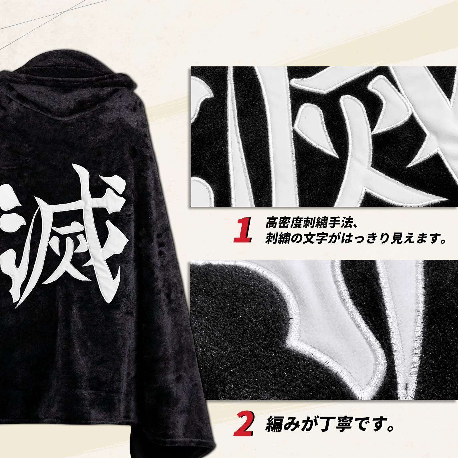 DIROLVON 鬼滅の刃 着る毛布 ブランケット フード付き 刺繡スタイル 肩掛け 着脱が簡単 冬に ルームウェア 暖かい ふわふわ 可愛い おしゃれ クリスマス ハロウィン 仮装 記念撮影 グッズ