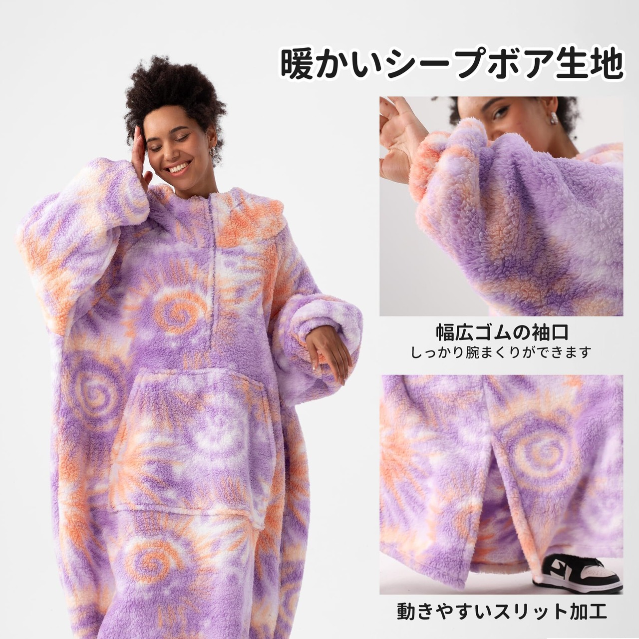 【在庫限り】[Winthome] 着る毛布 ロング丈 ルームウェア ジッパー付き 部屋着 全身カバー ゲーミング 裏起毛シープボア もこもこ 軽量 保温 フード ポケット付 ガウン 大きいサイズ 防寒対策 エコ メンズ レディース
