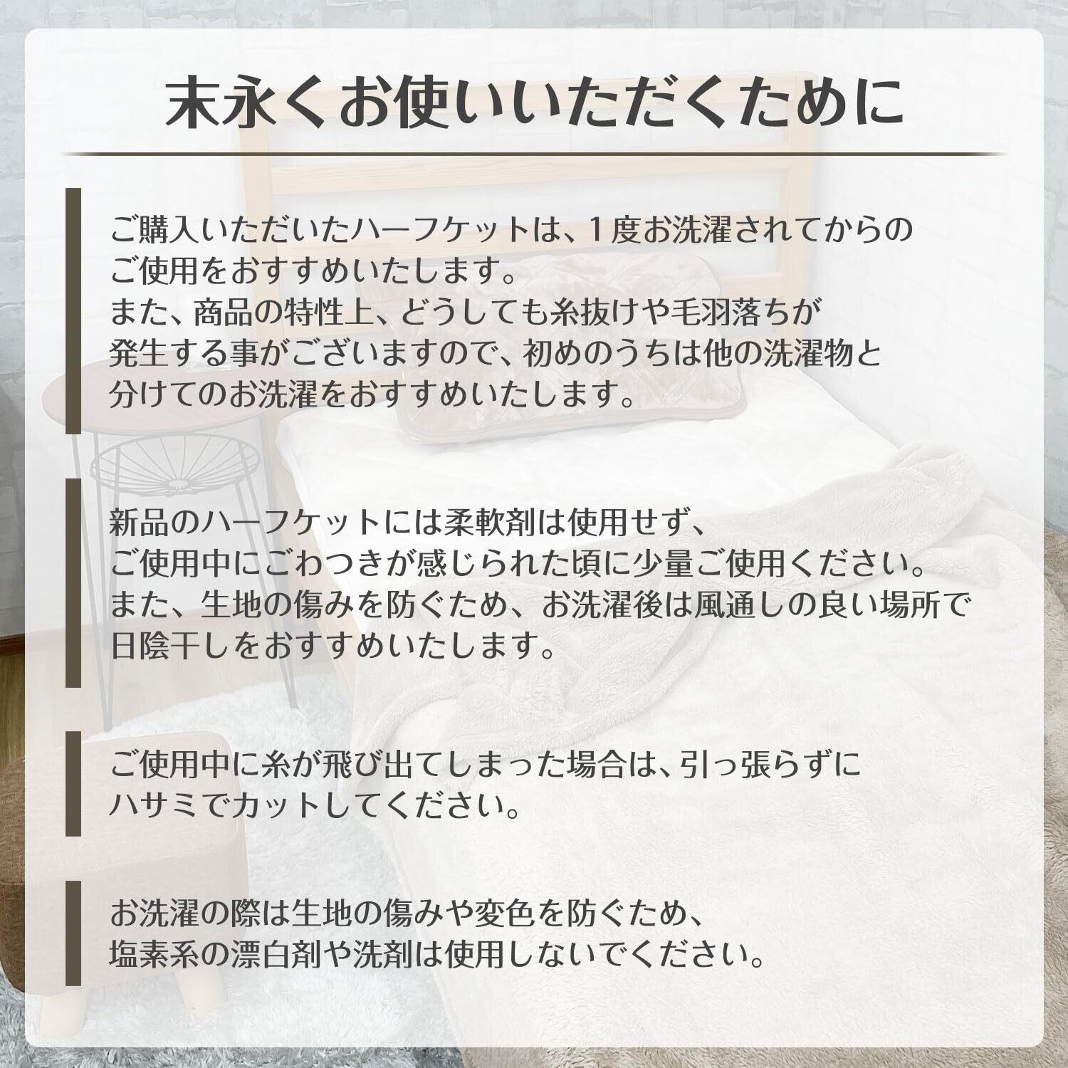 【高密度な繊維でしっかり保温】 ハーフケットは薄手で軽い毛布ですが、高密度なフランネル生地を使用しているため温まった空気を逃がさずしっかりあったか! 重い毛布が苦手な方やお洗濯や収納を楽にしたい方にもおすすめ!