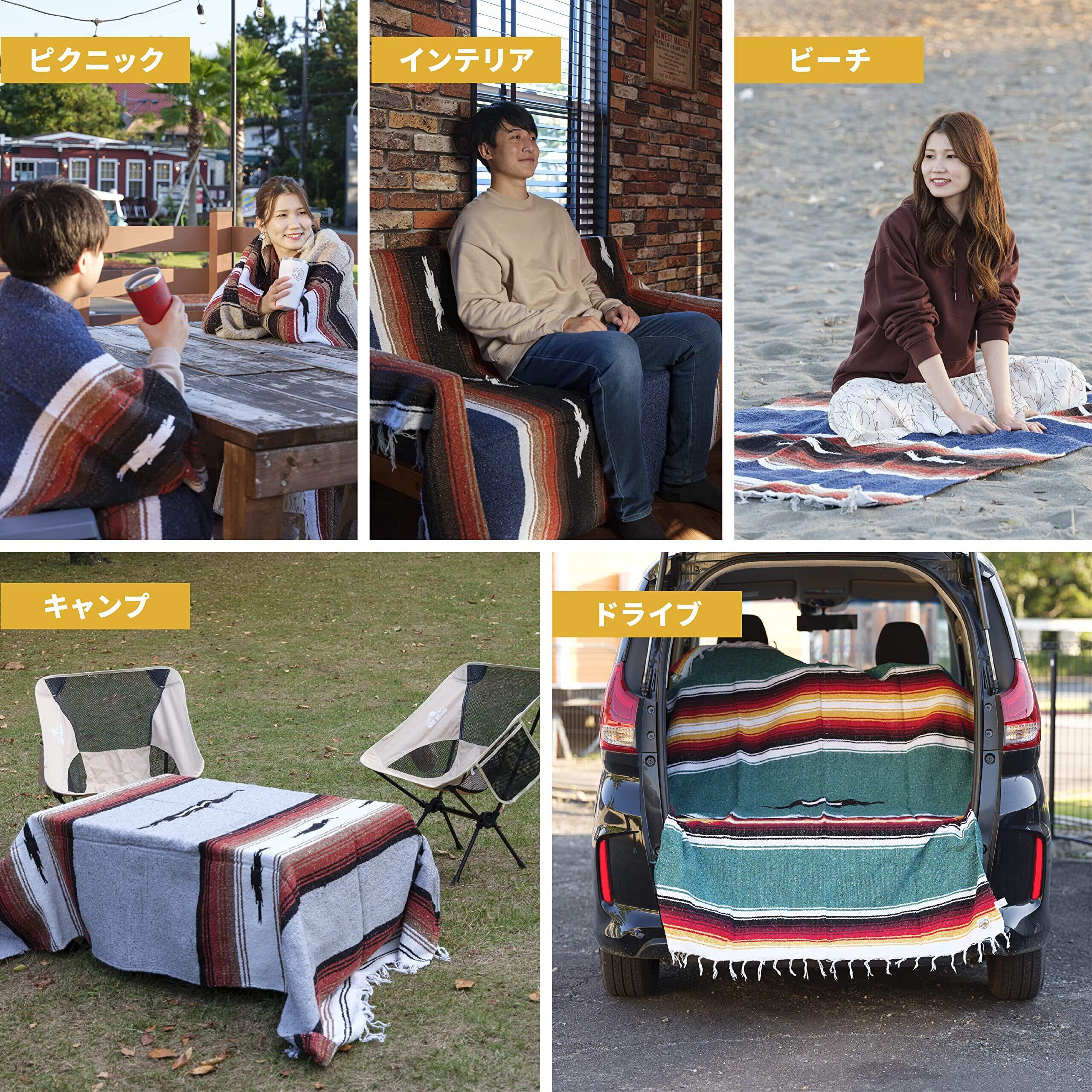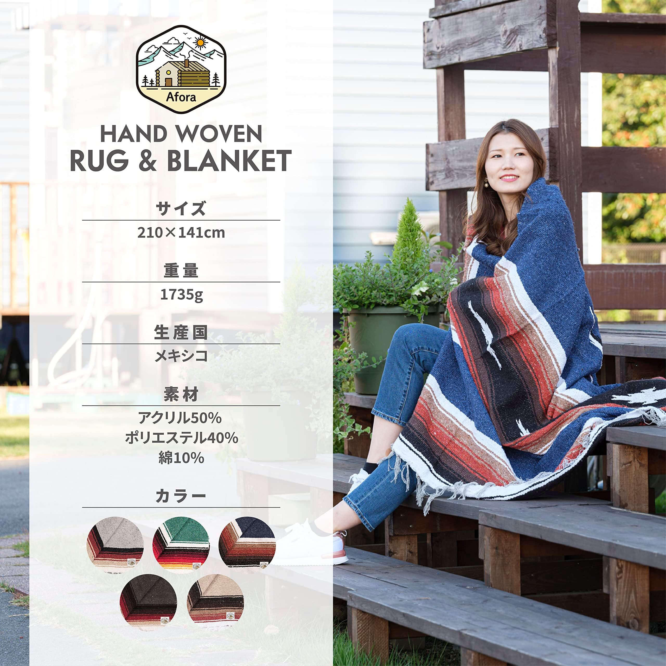 Afora ラグ ブランケット 大判 メキシカン マルチカバー キャンプ アウトドア ひざ掛け ハンドメイドの手作り プレゼント ギフト 丸洗いOK