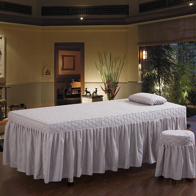 シンプルなデザイン:SPAマッサージテーブルスカート美容ベッドカバーリネンバランスシート。無地なデザインで清潔感を演出します。
