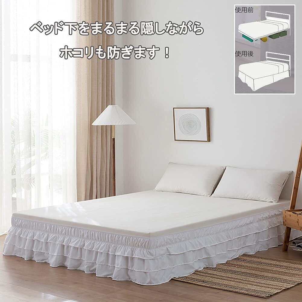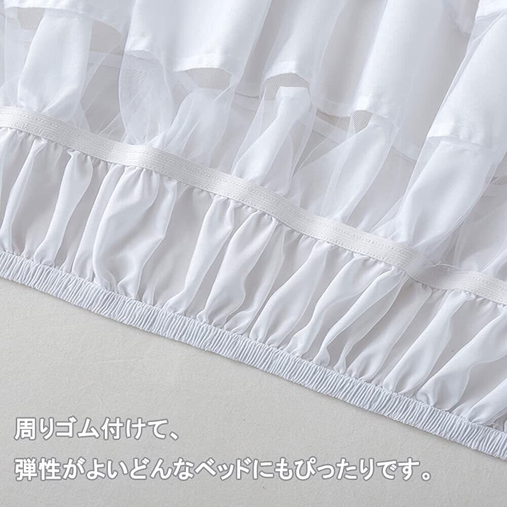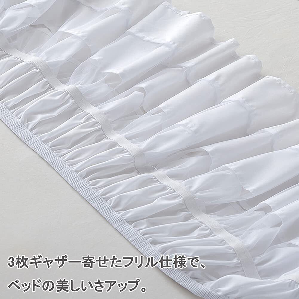 Hikki ベッドスカート シングル 簡単フィット ベッド用 伸縮性 フリル付き ベッド飾り 無地 ホコリ防ぎ ベッドルーム 雰囲気アップ ホワイト