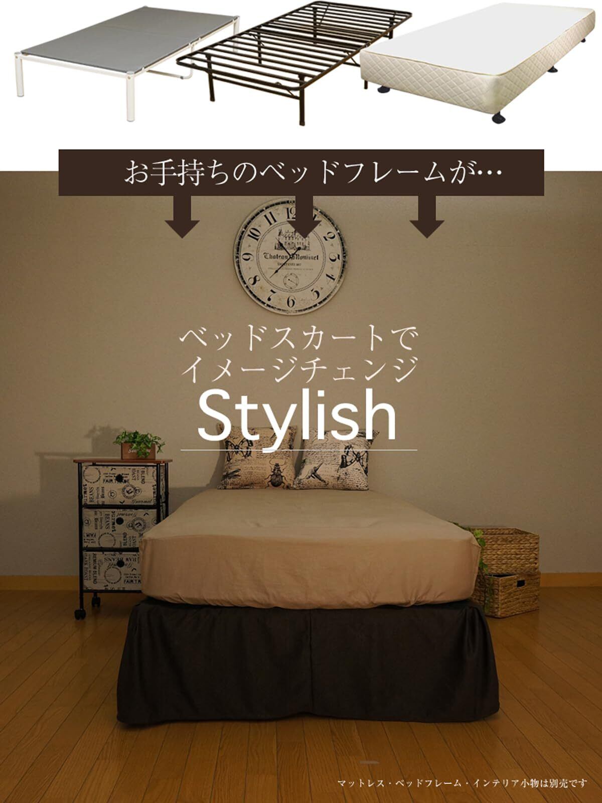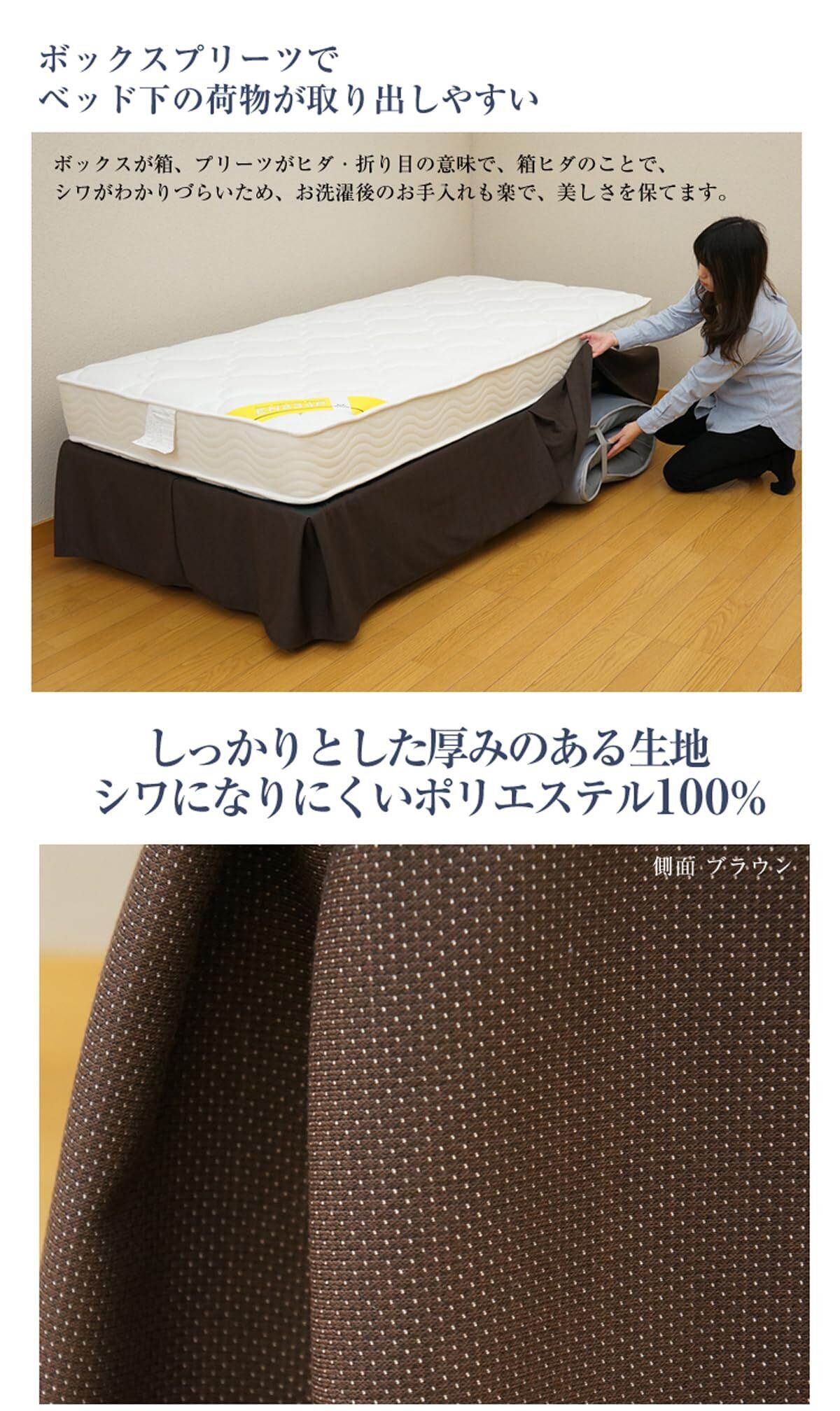 【2025最新】【ベッドアンドマットレス】 ベッドカバー ベッドスカート ベッド下収納を隠す 寝室インテリア お手軽ホテルスタイル シングル(幅97cm) ブラウン