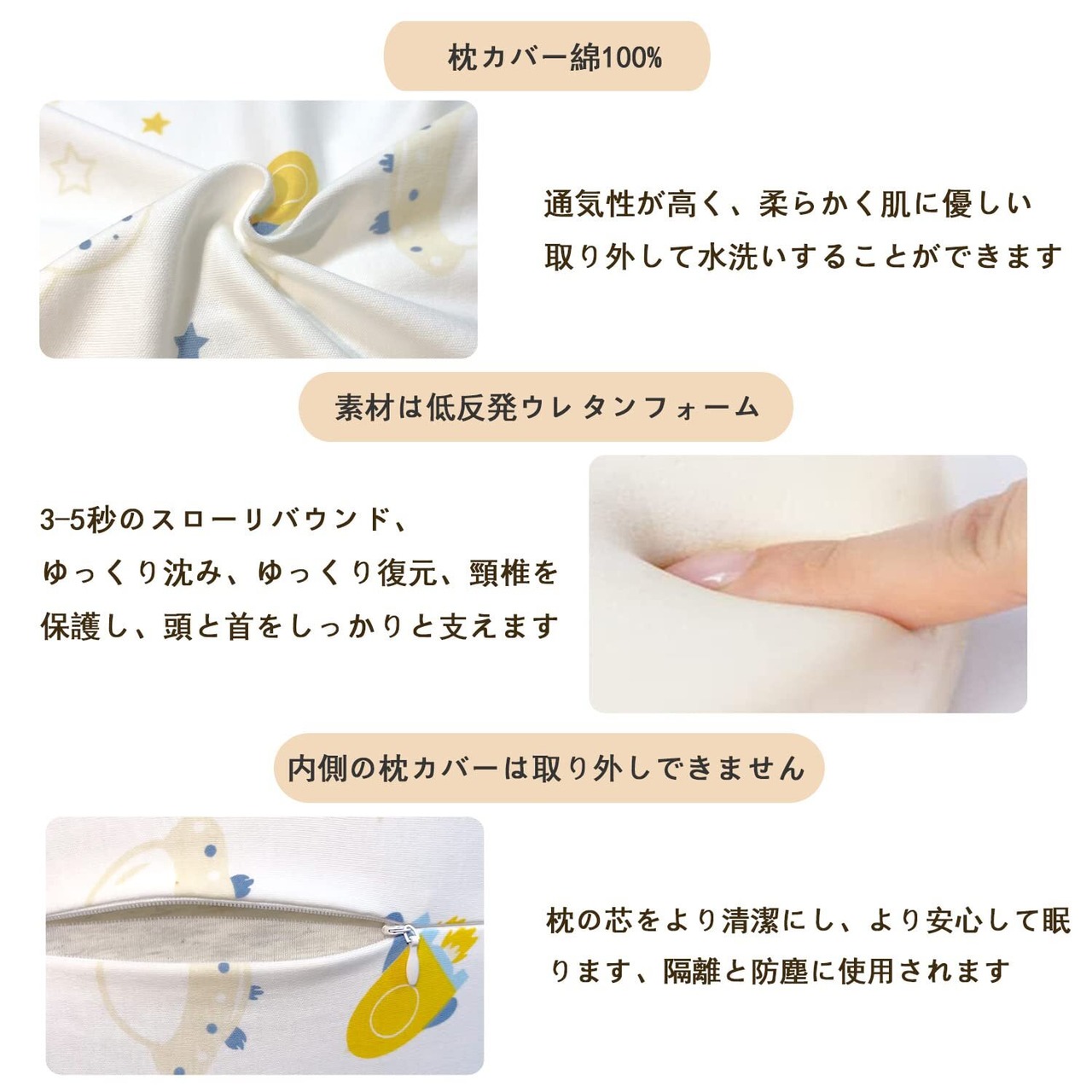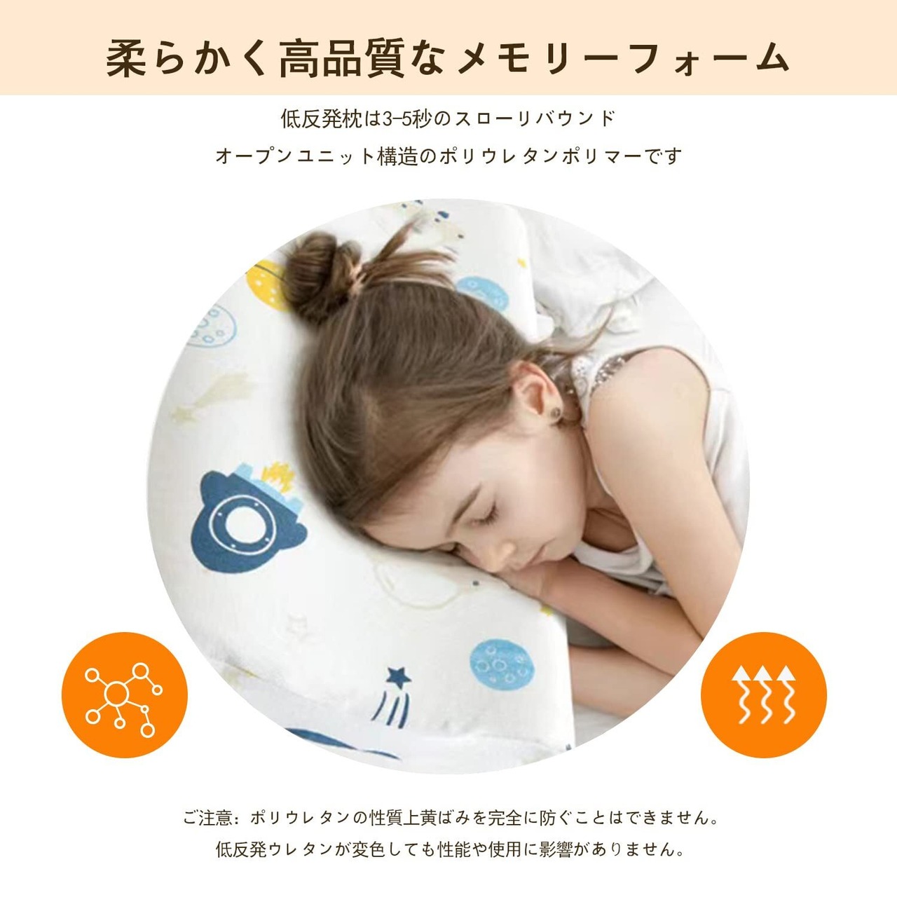 【特価セール】FAYOSA 子ども用まくら 子供用低反発枕 メモリーフォーム素材 通気 快眠 高さ調整 向き癖防止 寝姿を矯正 カバー綿100%洗える 男女兼用 1~6歳適用 40*24*3/5cm 宇宙船図柄