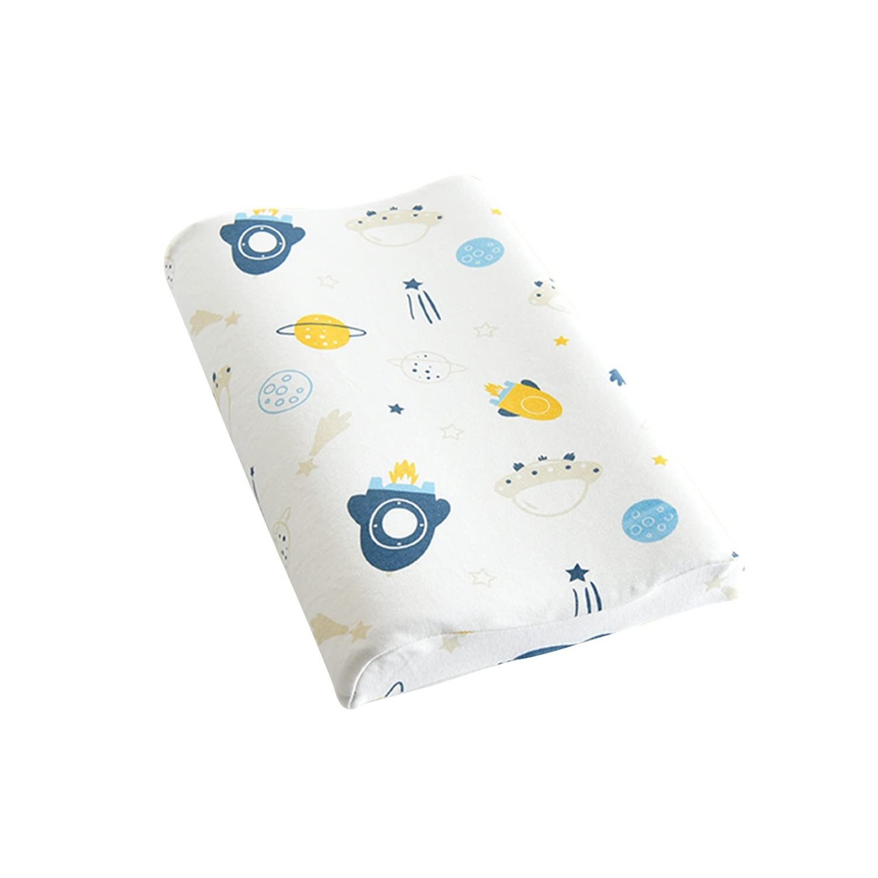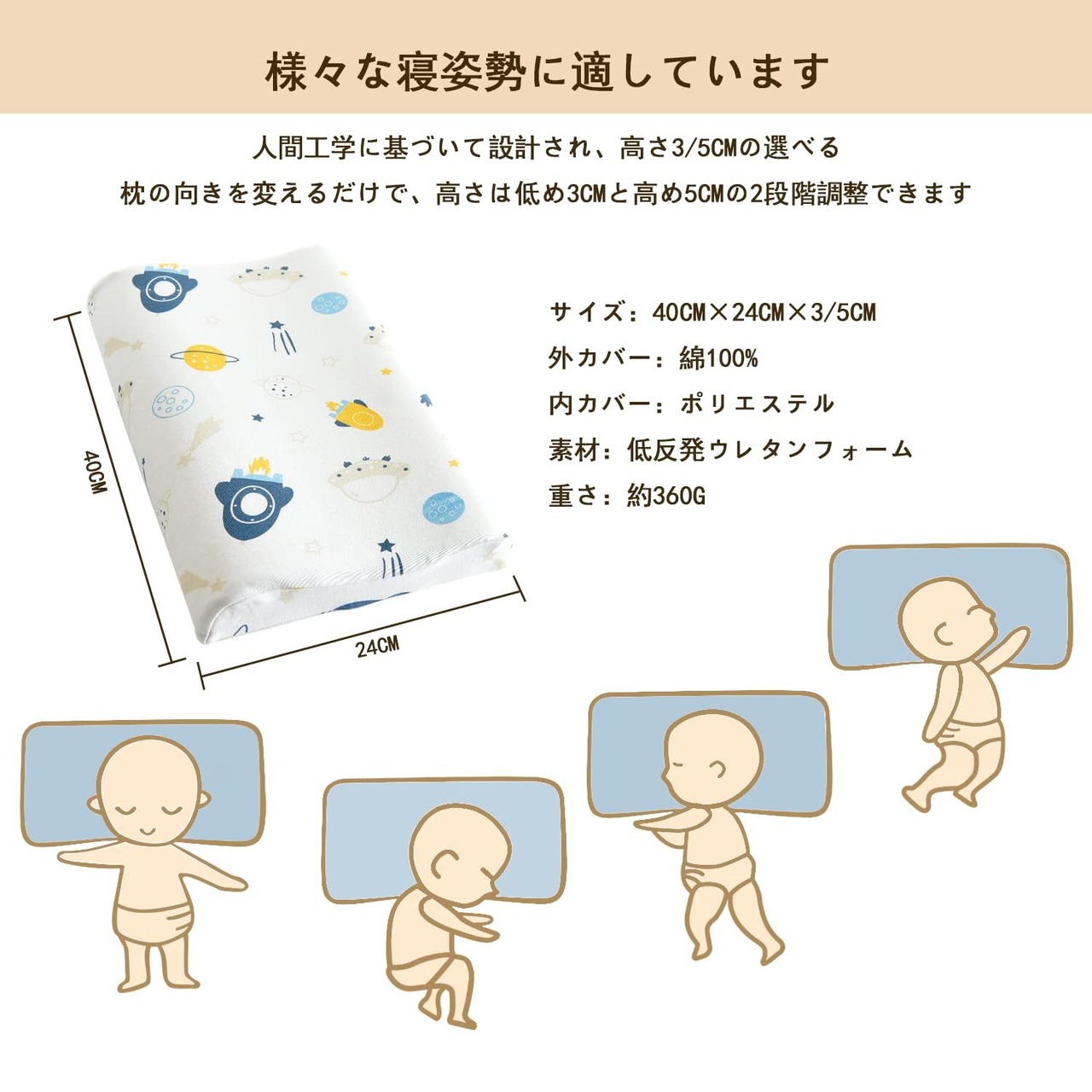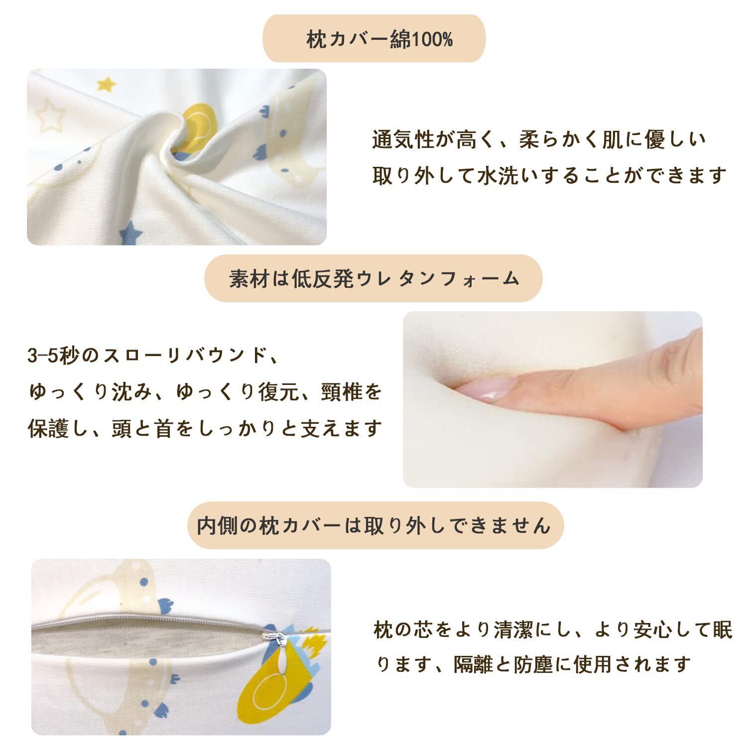 FAYOSA 子ども用まくら 子供用低反発枕 メモリーフォーム素材 通気 快眠 高さ調整 向き癖防止 寝姿を矯正 カバー綿100%洗える 男女兼用 1~6歳適用 40*24*3/5cm 宇宙船図柄