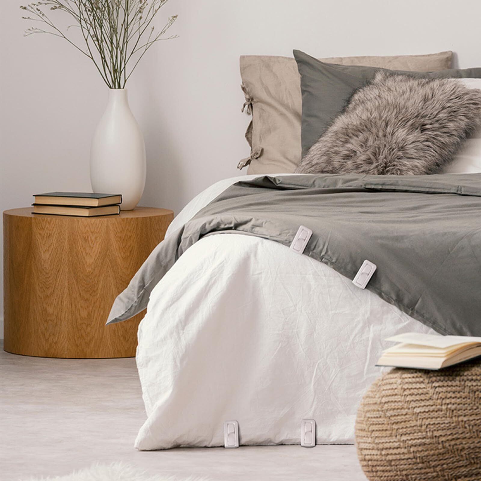 【布団の滑り止め】この布団クリップを使えば、布団が滑り落ちたり位置がズレたりする心配はもうありません。安定した滑り止め機能付きふとん留め具で、取り付け、取り外しが簡単で、ふとんの表面を傷つけず、跡が残りません。