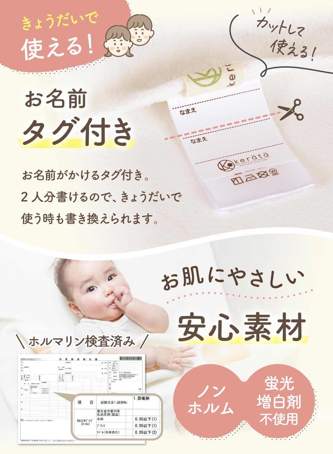 【安心素材】敏感なお子さまの肌にふれるから素材はもちろんコットン100%!さらにノンホルムアルデヒド&蛍光増白剤不使用でお子さまの肌にもやさしい安心素材です。