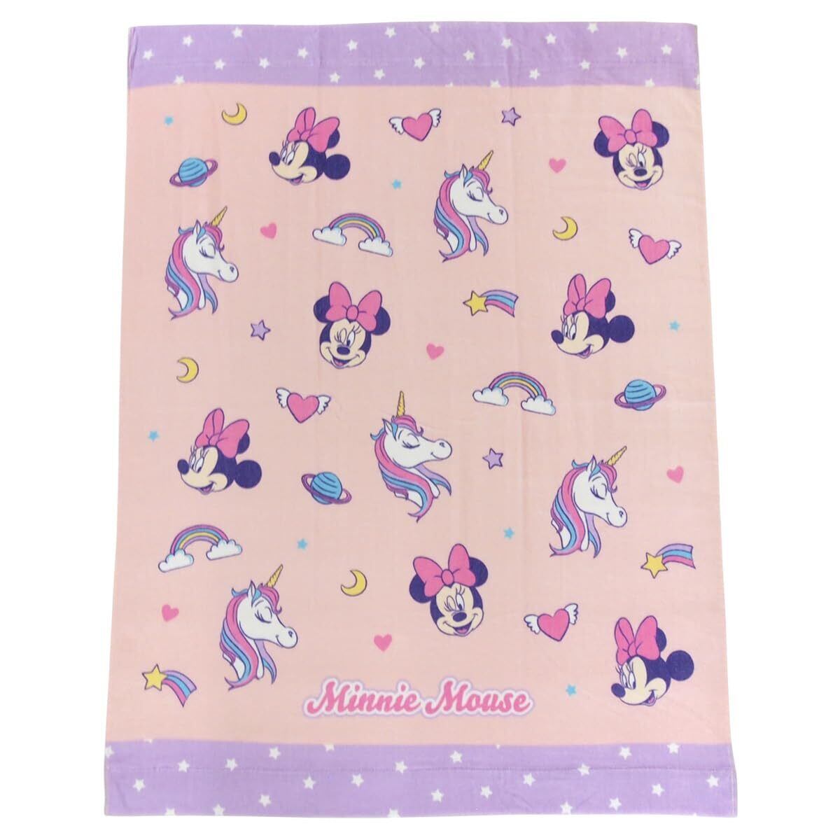 お子様のお昼寝にピッタリのタオルケット/ミニーマウスとユニコーンのかわいいデザイン。