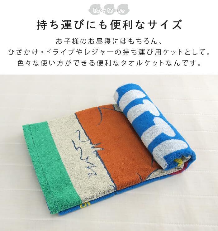やわらかいのにしっかりとした質感、毎日心地よく眠れるタオルケット。お子様のお昼寝にもピッタリのコンパクトサイズです。薄くも厚くもない適度なボリューム、気軽に使える心地よさと汗をかいてもサラっとベタつきにくい使用感。かわいいデザインをタオルの風合いを損なわないジャガード織りで仕上げました。軽くて重苦しくなく、お肌のデリケートな方もお子様も安心。春夏だけでなく、寒い季節も掛け布団と合わせて使うことで、ムレない毛布としてオールシーズンお使いいただけます。
