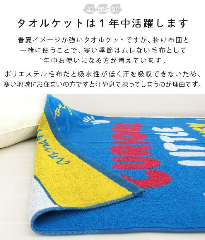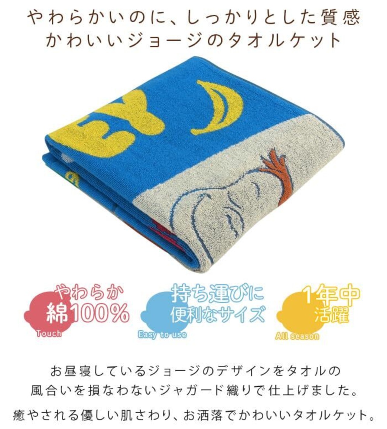 リヴェール おさるのジョージ お昼寝ケット タオルケット ブランケット 大判バスタオル 綿100% 保育園 幼稚園 かわいい 子供 夏用