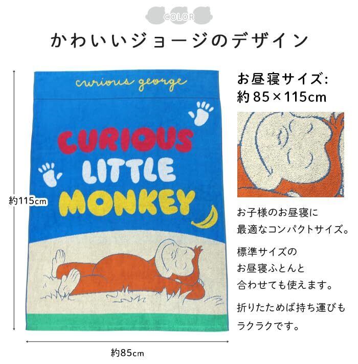 【在庫限り】リヴェール おさるのジョージ お昼寝ケット タオルケット ブランケット 大判バスタオル 綿100% 保育園 幼稚園 かわいい 子供 夏用