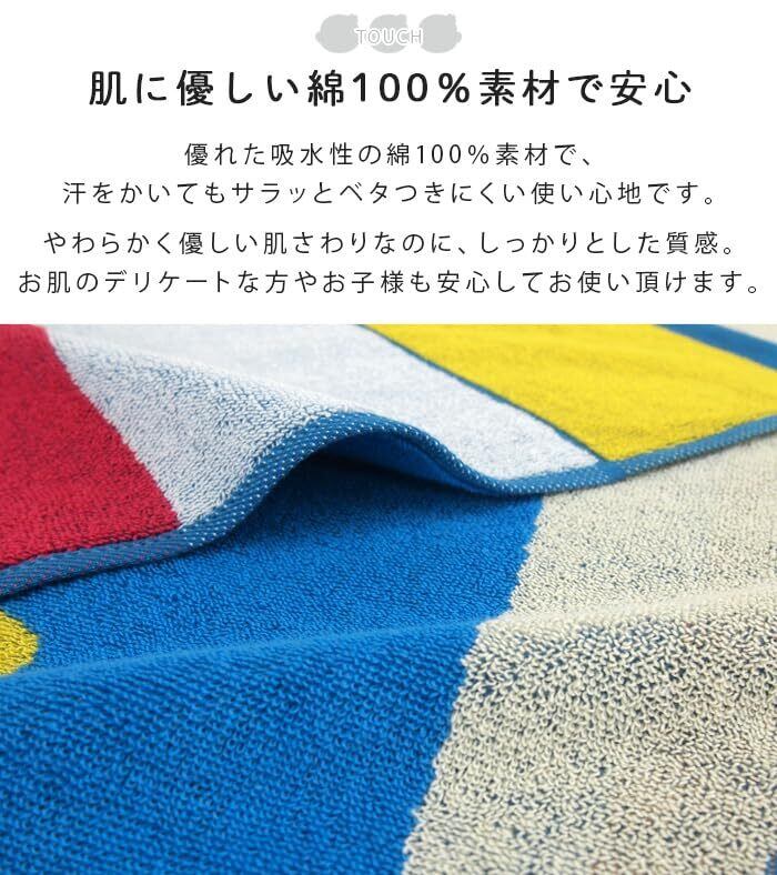 薄くも厚くもない適度なボリューム、気軽に使える心地よさと汗をかいてもサラっとベタつきにくい使用感。かわいいデザインをタオルの風合いを損なわないジャガード織りで仕上げました。