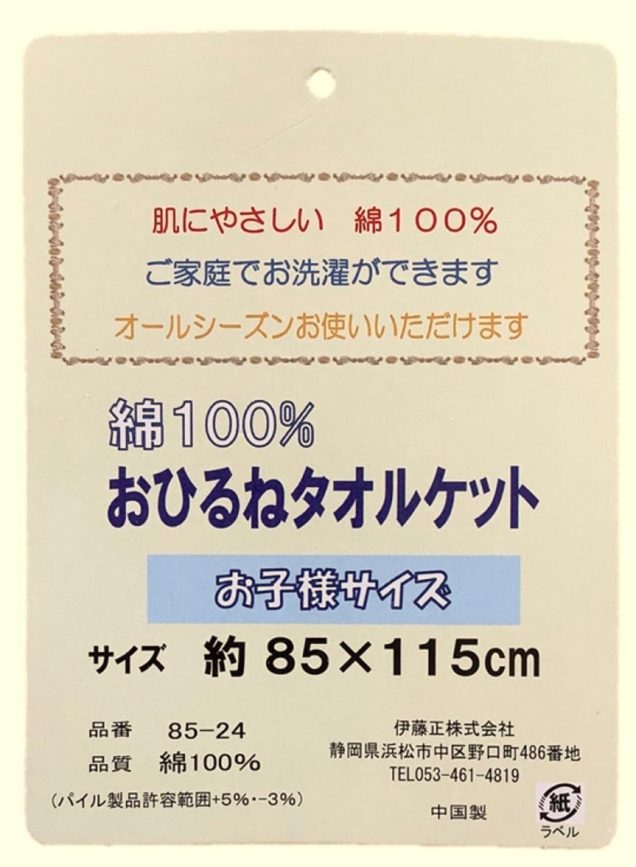 小さなお子様に最適 肌にやさしい天然素材 綿100% お昼寝タオルケットです