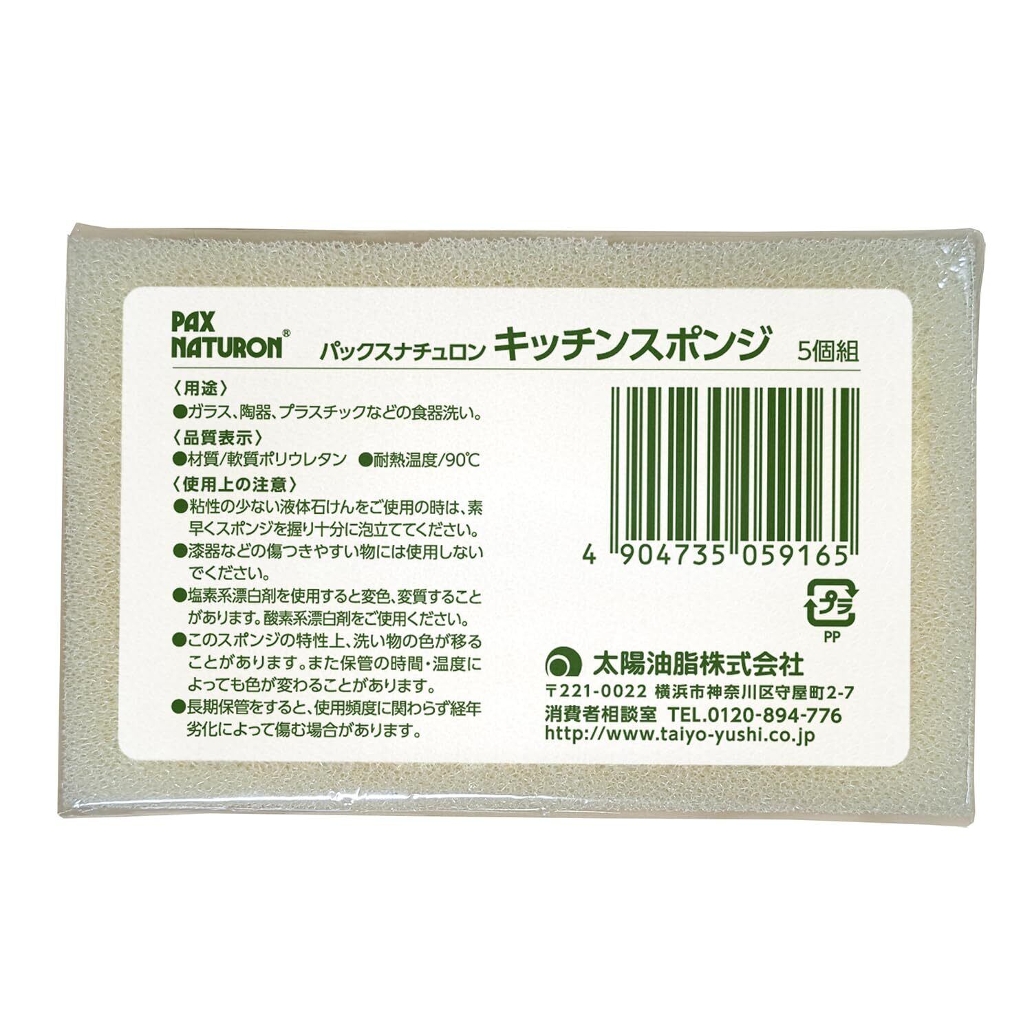 【数量限定】PAX NATURON(パックスナチュロン) キッチンスポンジ (ナチュラル / 5個セット) 台所 食器洗い 皿洗い スポンジ (泡立ち/水切れ/耐久性) 太陽油脂