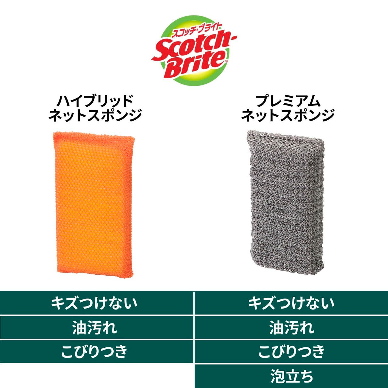 3M スコッチブライト ハイブリッド ネット スポンジ 食器洗い キッチンスポンジ 食器用スポンジ キズつけない オレンジ 6個