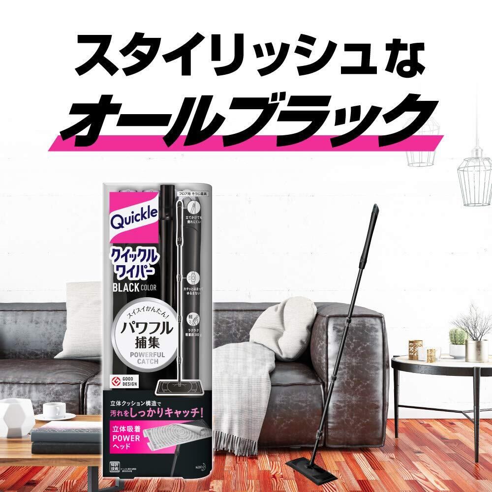【2025最新】クイックルワイパー ブラックカラー フロア用掃除道具 本体 スイスイかんたん! 汚れをパワフル捕集!