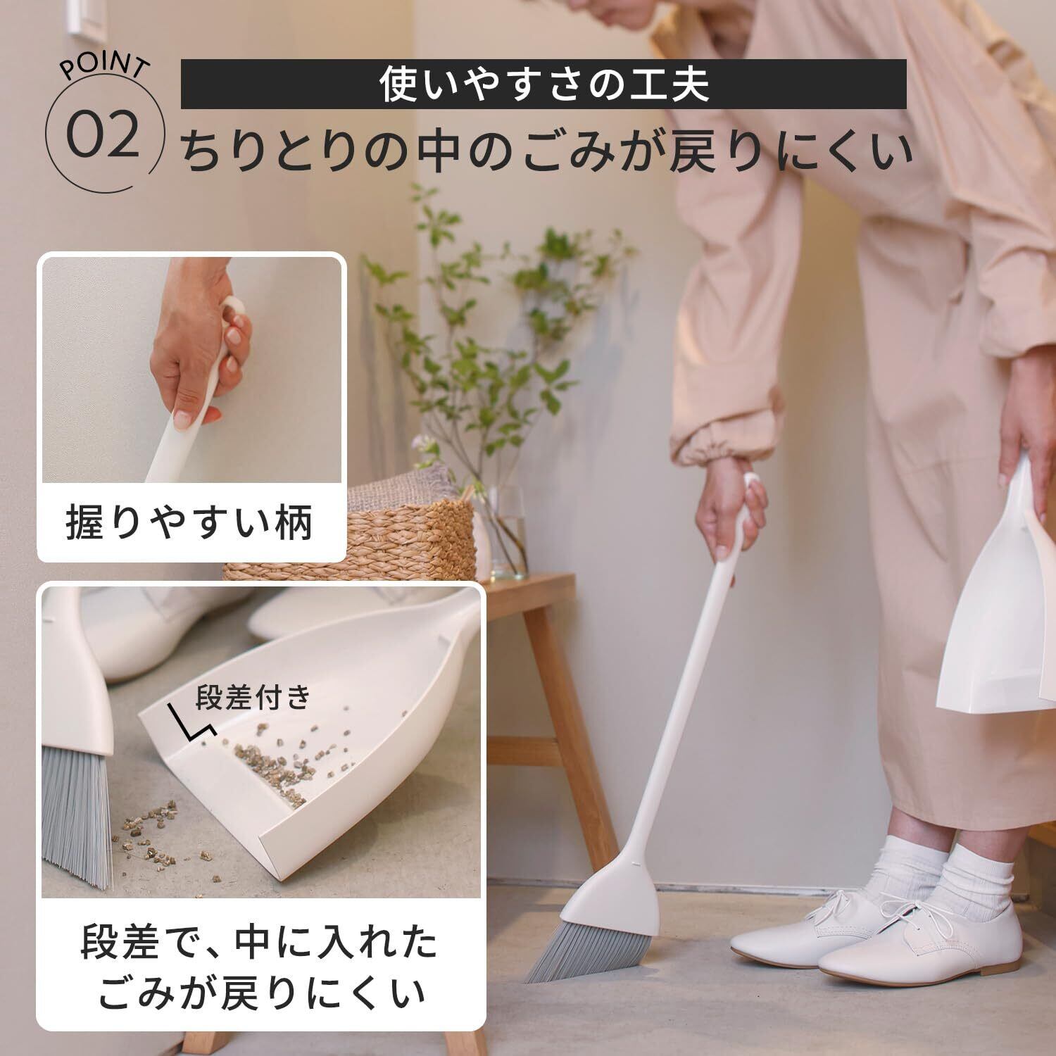 【掃除しやすい角度】ブラシ部分は角度をつけているので、隙間や溝のゴミも掃きとれます。また、ちりとりは段差がついており、ゴミが逆流しにくい形状です。薄い楕円のグリップで、しっかり握って掃除ができます。