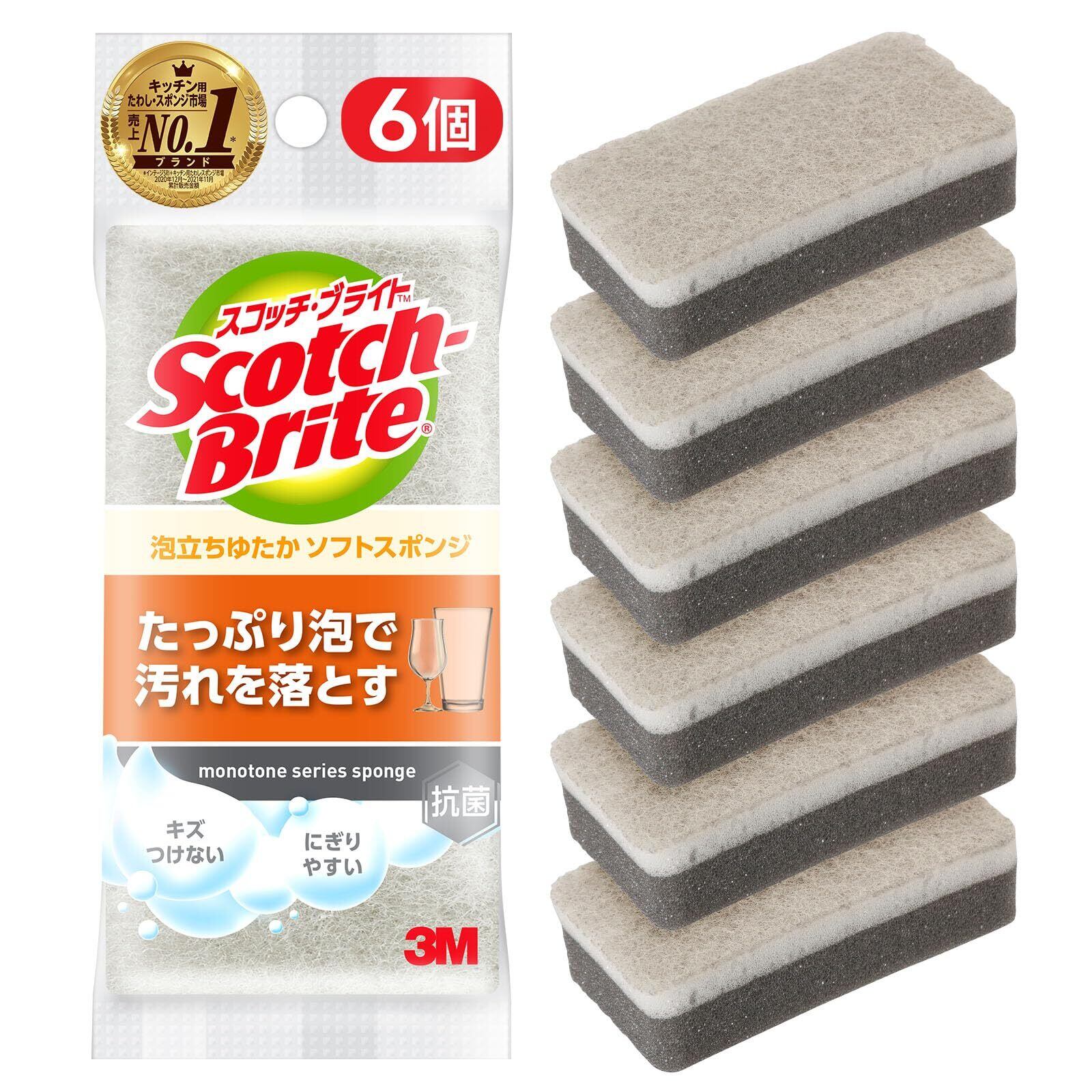 【2025最新】 3M スコッチブライト 泡立ちゆたか ソフト スポンジ 食器洗い キッチンスポンジ 食器用スポンジ キズつけない グレー 6個