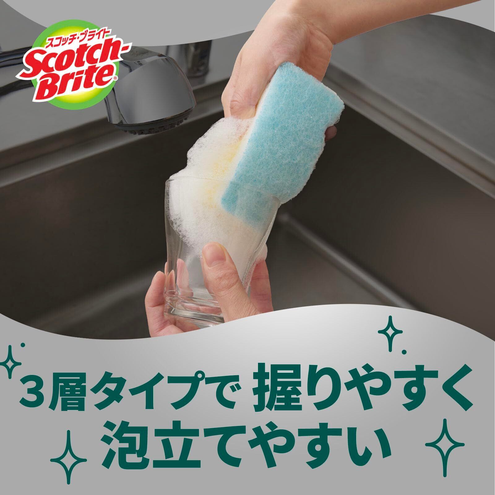 【泡立ち抜群で、食器洗いが楽しくなる! 】握りやすくコシのある2種類のウレタンスポンジをバランスよく貼り合わせることで、少ない洗剤でもたっぷり泡が立ち、油汚れや軽い汚れをキレイに落とします。