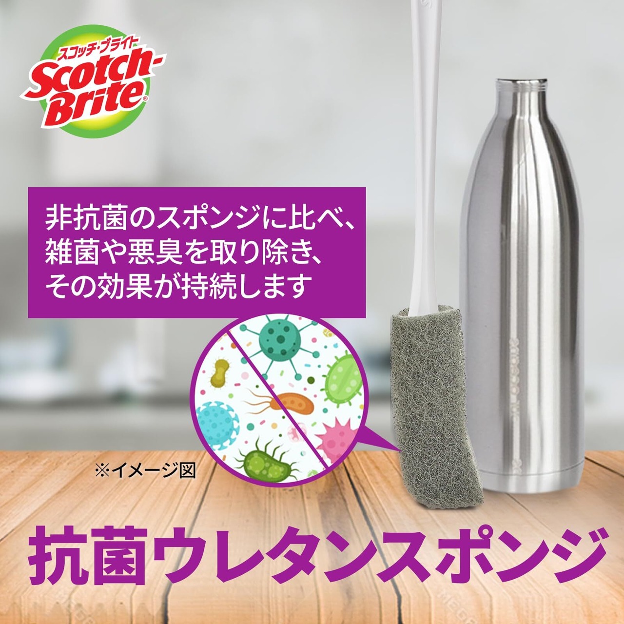 【限定セール】 3M スコッチブライト すごい ボトル洗い ボトルスポンジ 水筒洗いブラシ タンブラー ボトル洗浄 グレー 本体+取替1個