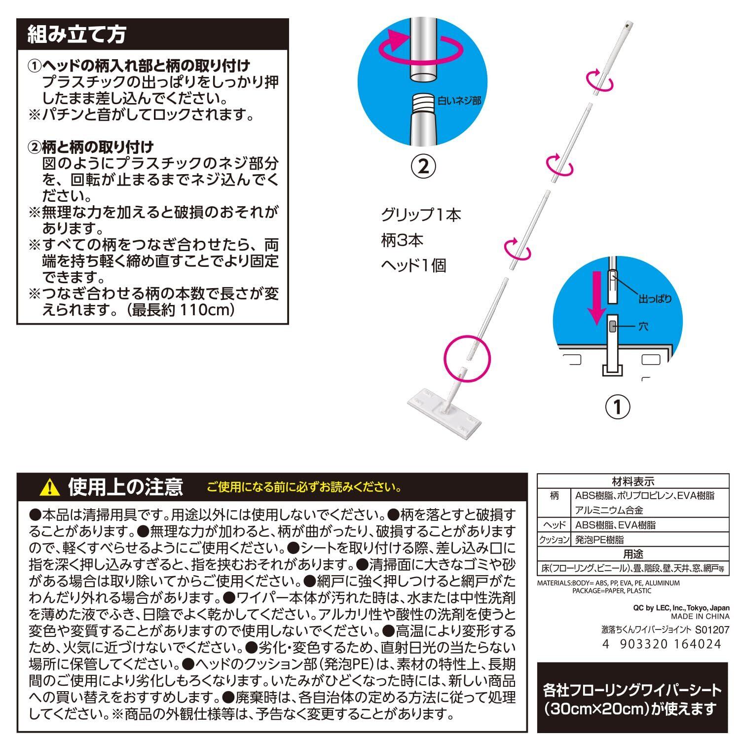 レック 激落ちくん スイスイ拭ける 軽量ヘッド ワイパー (ジョイント)/床に密着 立体クッション/押し込みやすい立体差込口