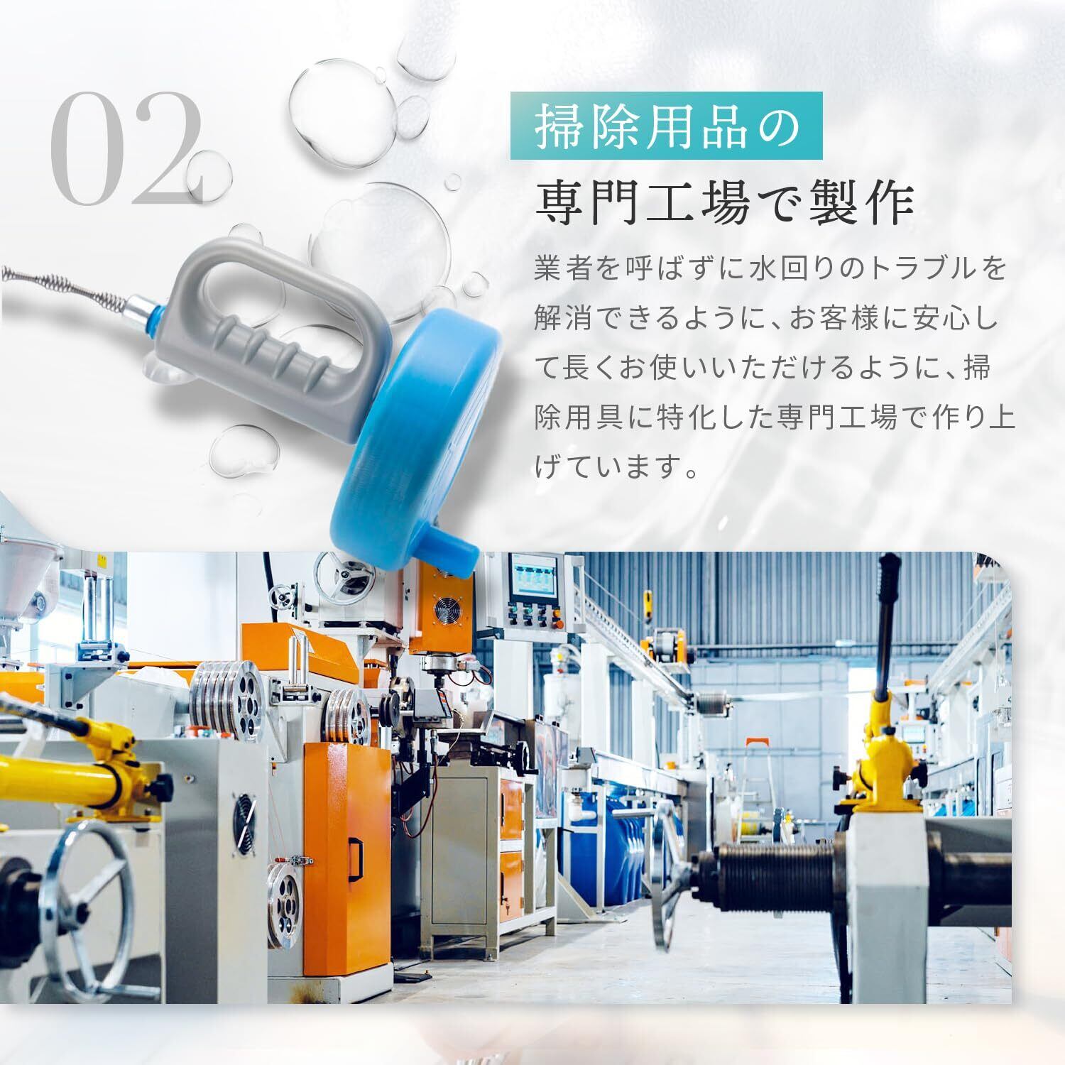 【様々なシーンでご使用可能】台所、洗面台、お風呂、P字、S字パイプ等、様々なところでお使い頂けます。業務用清掃ブラシとしても大活躍。*2cm以下の穴、格子形状の排水口、トラップ付きパイプにはご使用頂けません。P字、S字の場合でもつまりの状態や配管の太さなどによってはご使用できない場合があります。キッチンや排水パイプの形状によっては通らないものがあります。あらかじめ、排水パイプ にワイヤーが通るか、管理会社等にご自宅の構造をご確認ください。