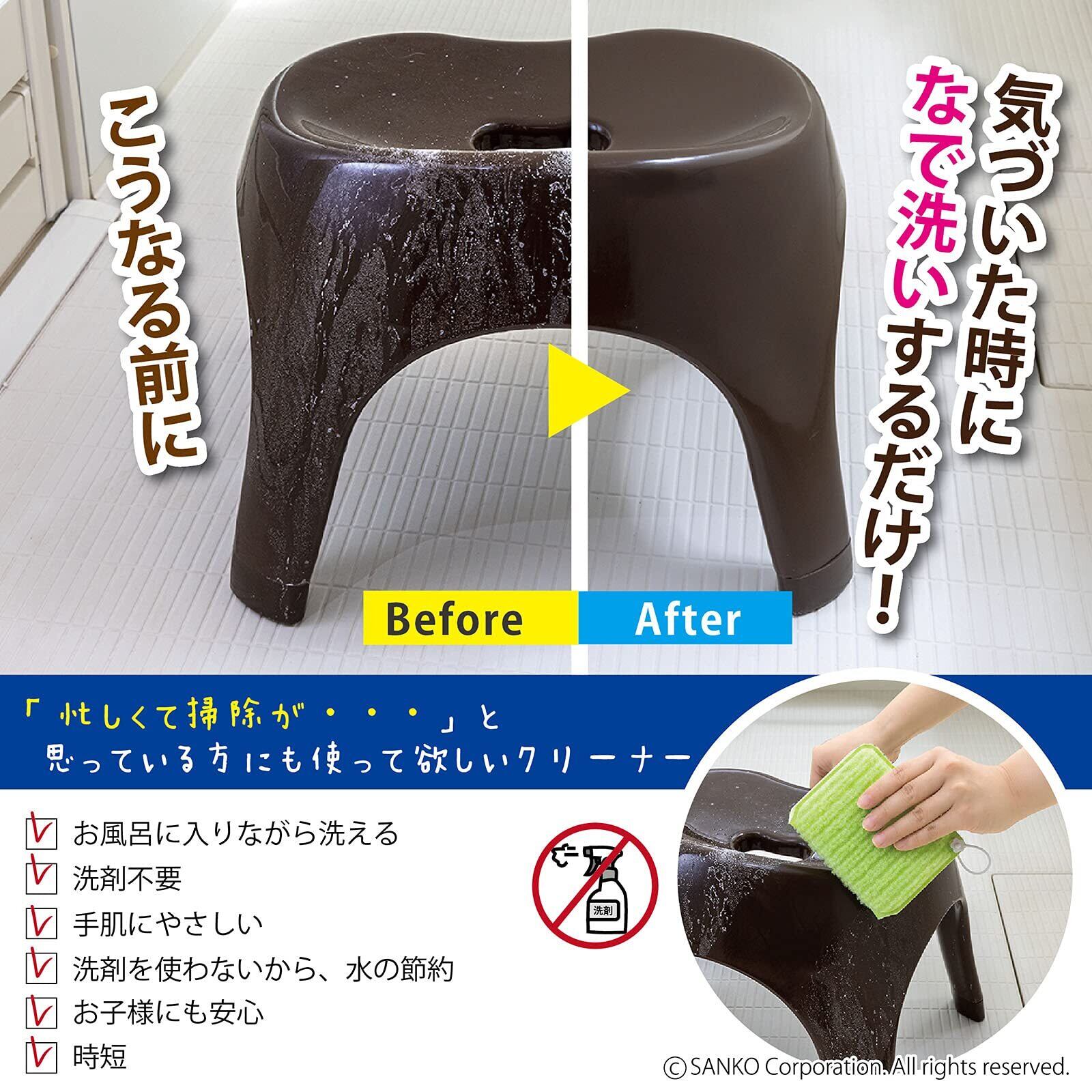 洗剤を使用せず汚れが落とせるので、手荒れ、節水対策、お子様のお手伝い、ながら掃除(お風呂に入りながら)ができます。